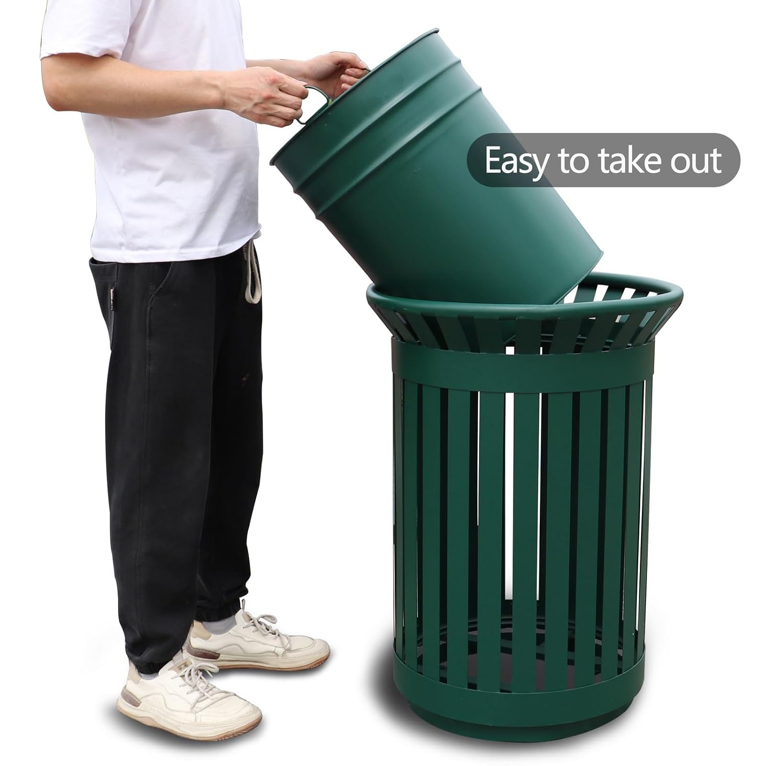 - Outdoor Metal Slatted Trash Receptacle - Healthy and environmentally friendly materials, healthy and safe, non-toxic, tasteless, durable.Waste Bin Stronger trash can, no deformation, impact resistance, and stronger bearing capacity.