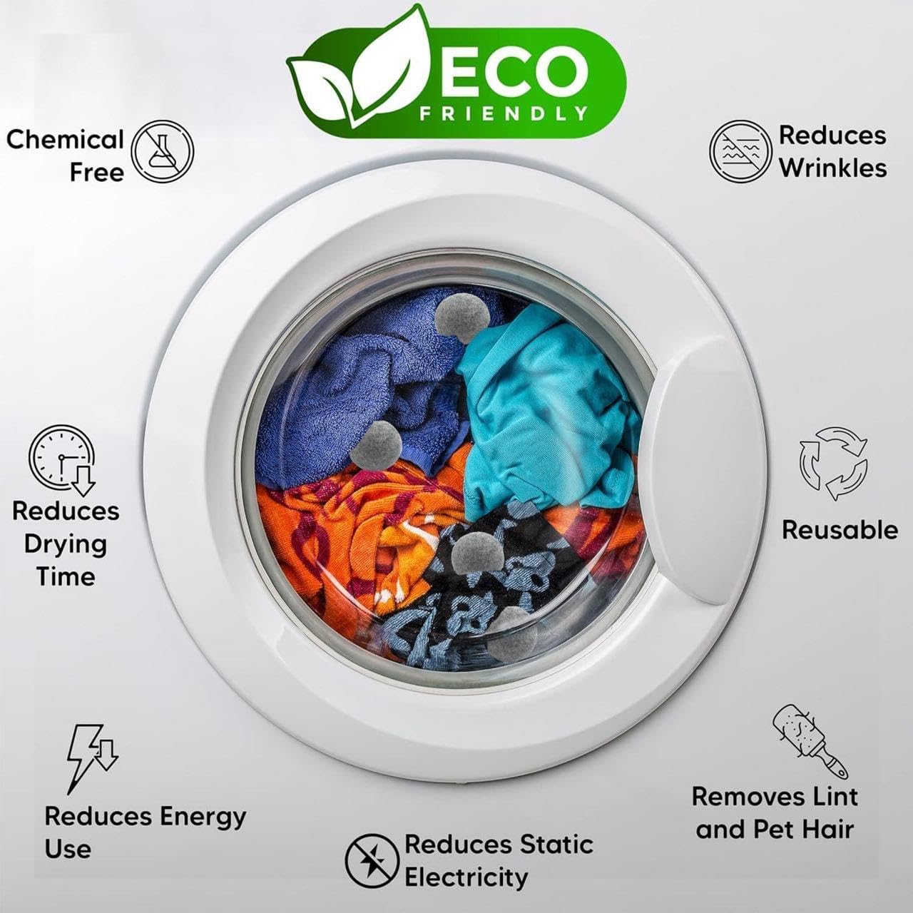 - š Let Your Dryer Balls Flow: Replace the infused fabric dryer sheets and fabric softeners with this natural alternative that will last more than a thousand dryer loads. These help in better hot air circulation as the dryer balls tumble around in the dryer, lifting and separating the laundry. This will also help in reducing appliance usage and electricity by shortening drying time.