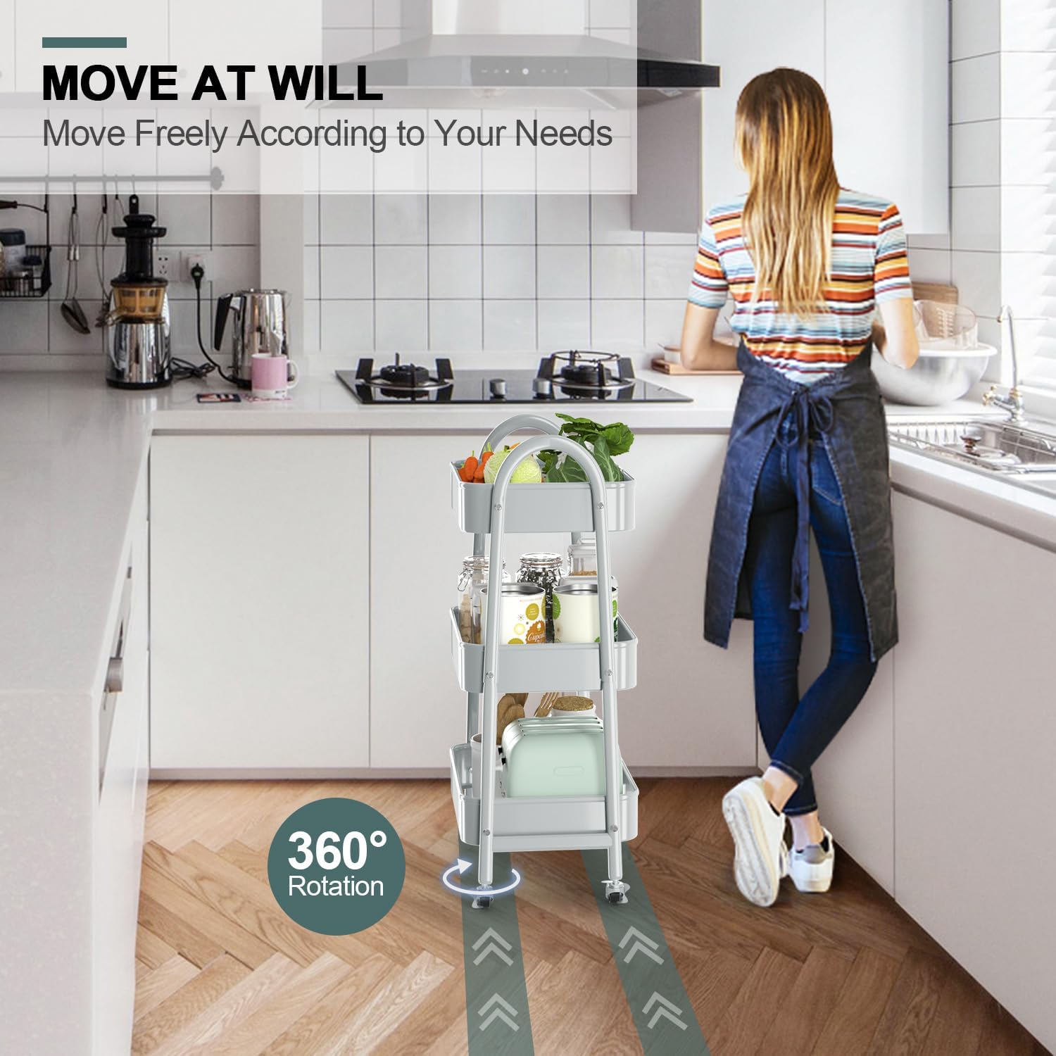 - Sturdy Metal Material, High Load-bearing: The cart is crafted of sturdy steel, sturdy and long to last. It supports 55 LBS per shelf. 3 large and deep baskets provide enough room for your daily essentials, kid supplies, office product, etc.