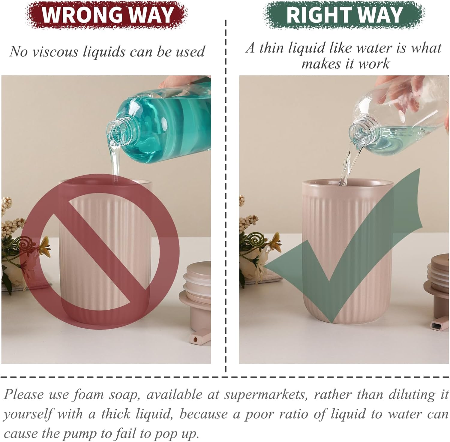 - Multi-use: The khaki soap dispenser used for foam hand soap filler and foam dish soap filler. And after removing the pump head, it can be used as a tumbler or toothbrush holder