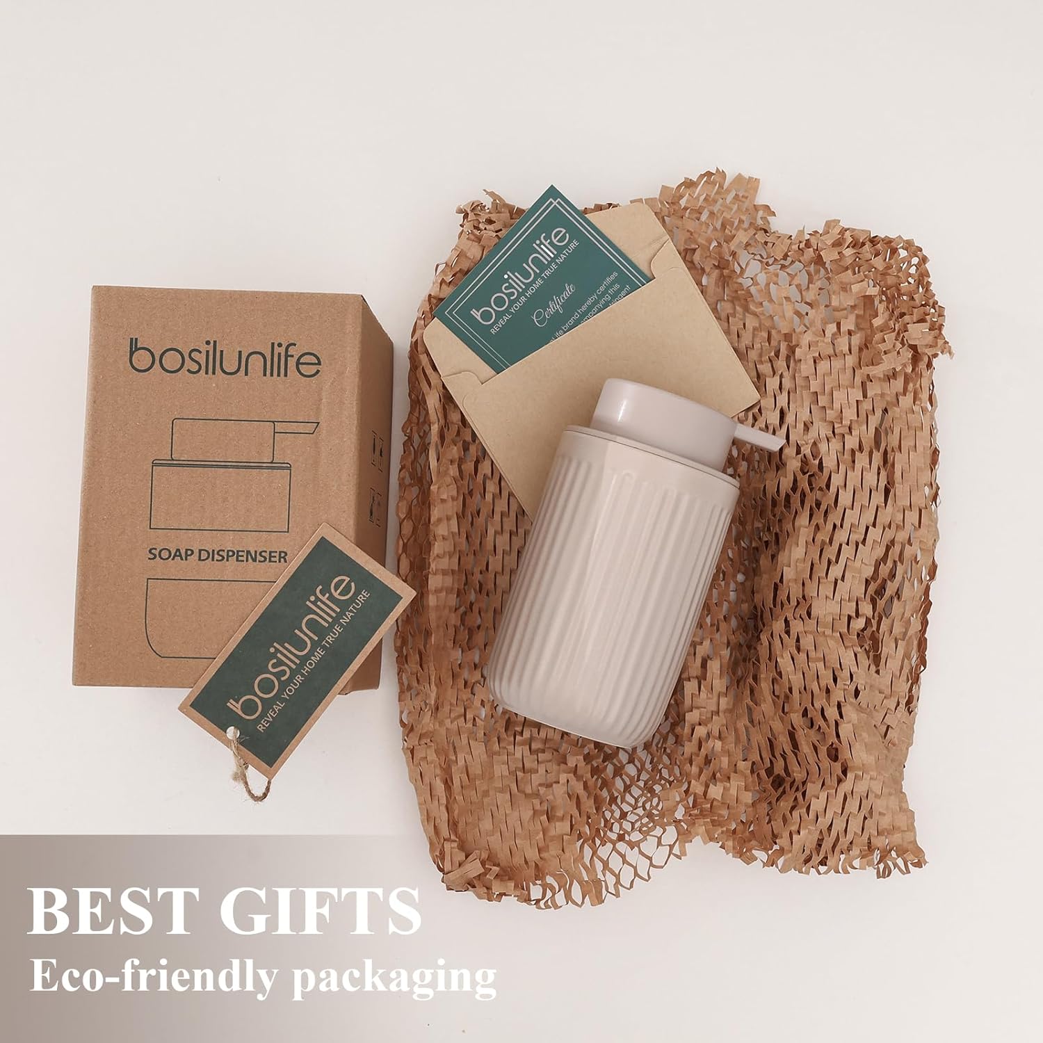 BosilunLife Foam Hand Soap Dispenser - Ceramic Foaming Soap Dispenser for Bathroom 12oz Refillable Liquid Lotion Soap Dispenser with Rust-Proof Foaming Pump for Countertop