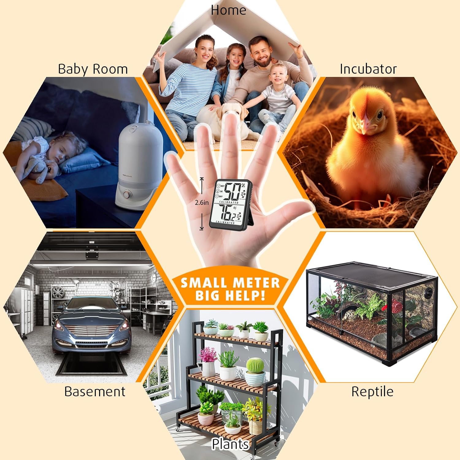 - Compact Design, Space-Saving: This indoor thermometer hygrometer features an adjustable kickstand, easy to carry. It is suitable for bedroom, baby room, greenhouse, plants, incubator, office, garage, car, basement, bathroom, camper, crawlspace, warehouse
