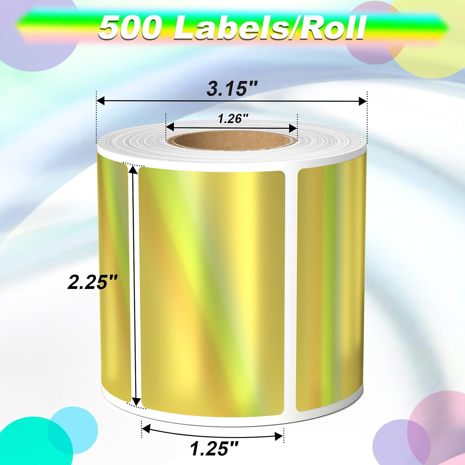 Thermal Sticker Labels 2.25 x 1.25, 500 Gold Holographic Printable Thermal Stickers for Logo Stickers, Name Tag, Thanks You Card, QR, FNSKU, Compatible with Thermal Label Printer