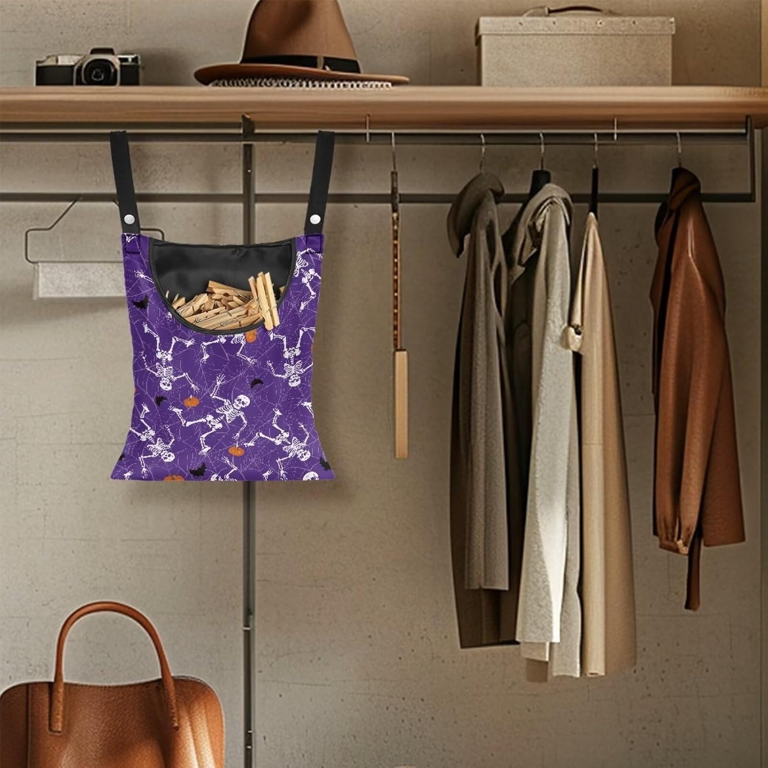 - 【With Hanger】these clothes pin bags outdoor waterproof with Equipped with sturdy rust-proof steel hooks can rotate 360 degrees, so you can hang it in different places according to need, such as bedroom, kitchen, living room, balcony, porch, yard, and other indoor and outdoor places, space saving and convenient.