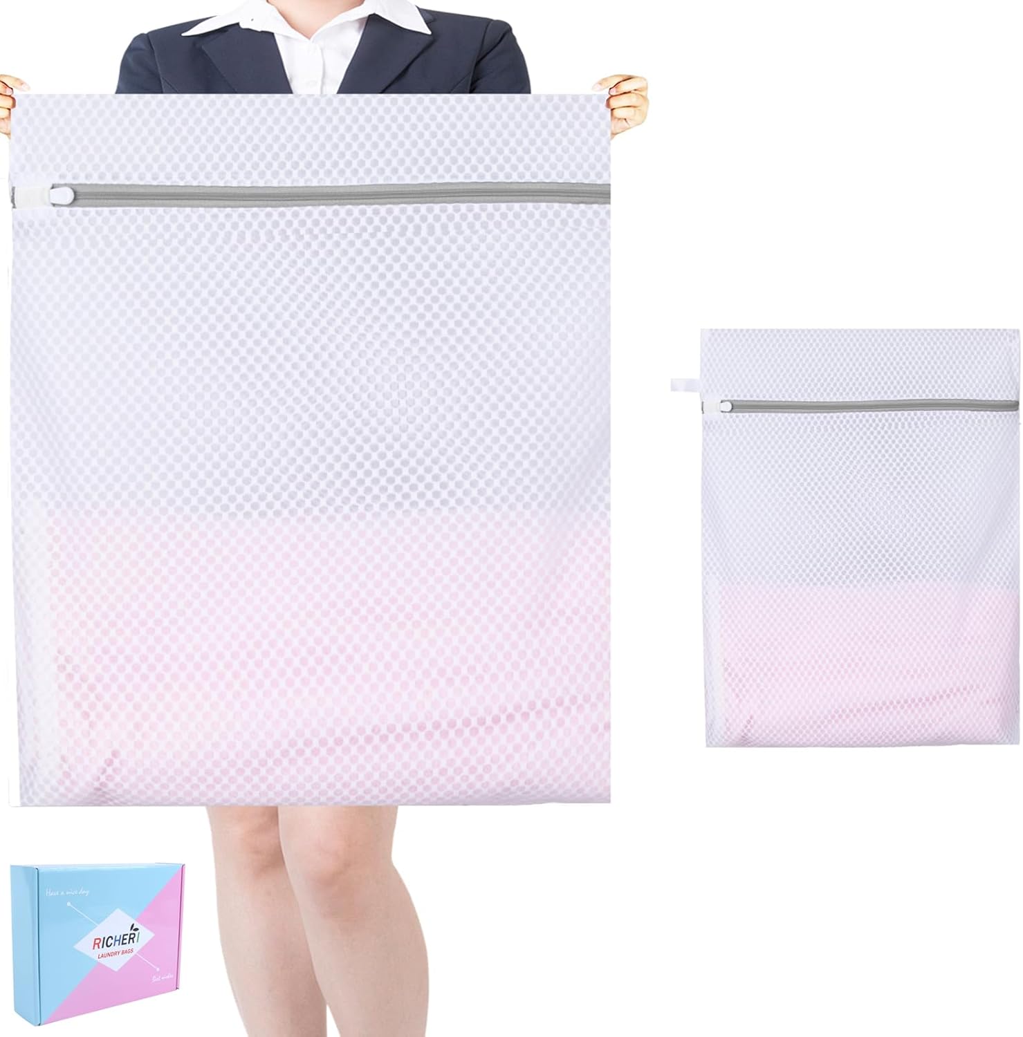 - Design: Our high quality rust-proof zippers have a ribbon hanger tag above them for easy hanging, and the zipper comes with an automatic lock and smart zipper protection to prevent the bag from opening during washing and drying cycles. You will have a quiet laundry experience.
