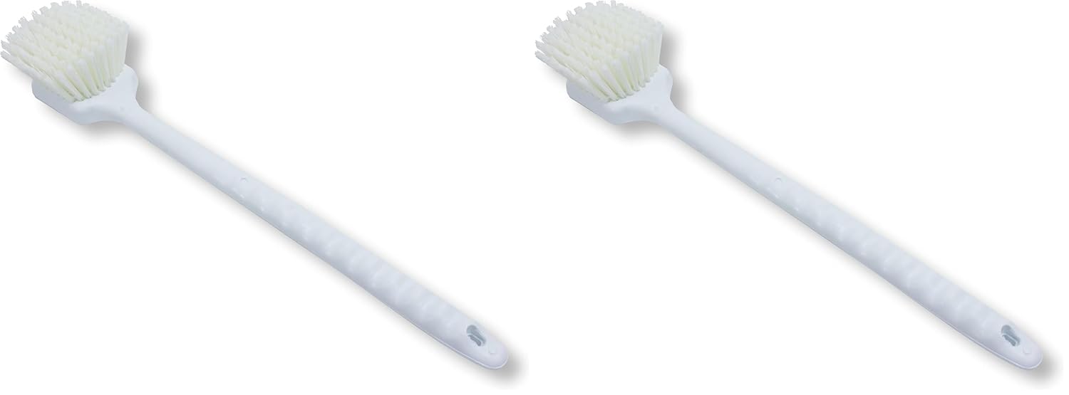 SPARTA Plastic Large Scrub Brush, Kitchen and Utility Brush with Long Handle for Cleaning, 20 Inches, White (Pack of 2)