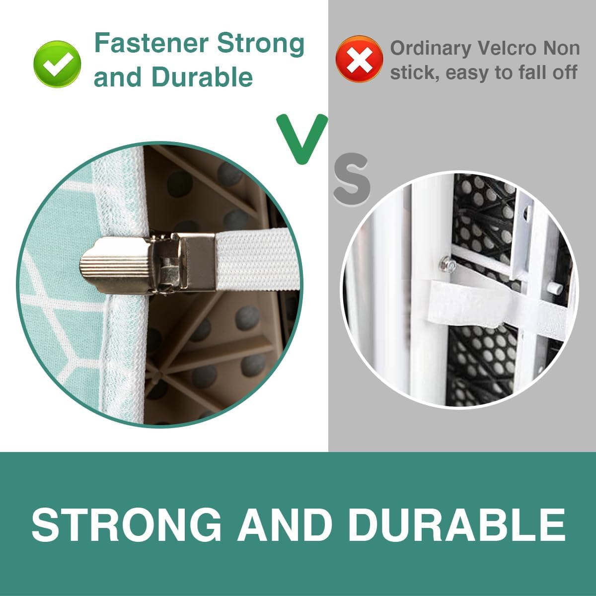 - 4 FASTENERS AND ELASTICIZED EDGE: Good Elasticized edge keeps ironing board covers securely in place. High quality stitching technology, no need to worry about the quality of the opening.Fasteners (optional) and the elasticized design make the surface of cover smooth