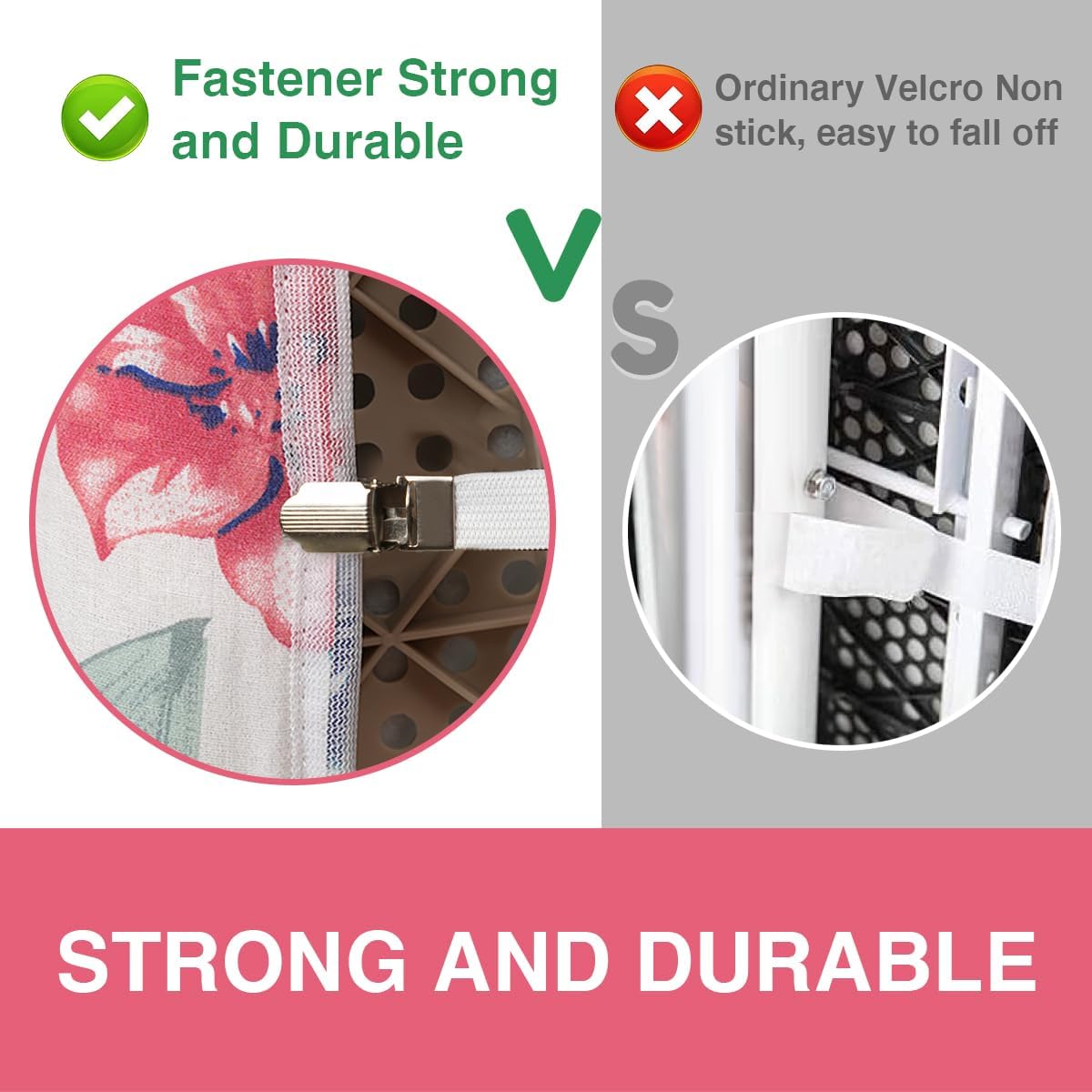 - ā„ 4 FASTENERS AND ELASTICIZED EDGE: Good Elasticized edge keeps ironing board covers securely in place. High quality stitching technology, no need to worry about the quality of the opening.Fasteners (optional) and the elasticized design make the surface of cover smooth