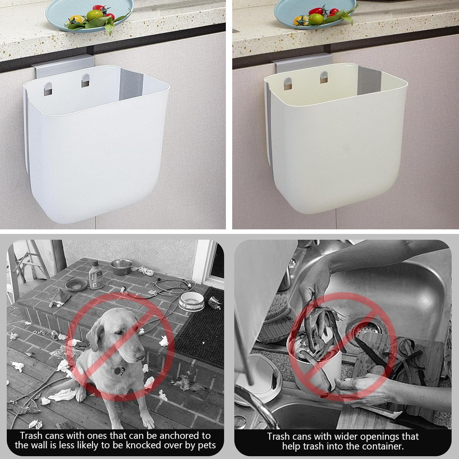 - ăSpace-Efficient Designă The collapsible and hanging design of our trash bin optimizes space in your kitchen. When not in use, simply fold it up for easy storage and open it whenever you need it