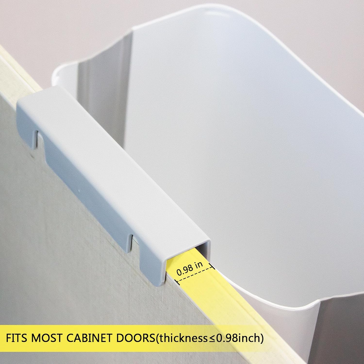 - ăKitchen Must-Haveă Installing our hanging trash can is quick and tool-free. Just fix the hook on the back of the trash can, insert the trash bag, secure it with the pressure ring, and attach it to any cabinet door or drawer. (Make sure the door is less than 1.81 inch/3cm thick before purchase!)