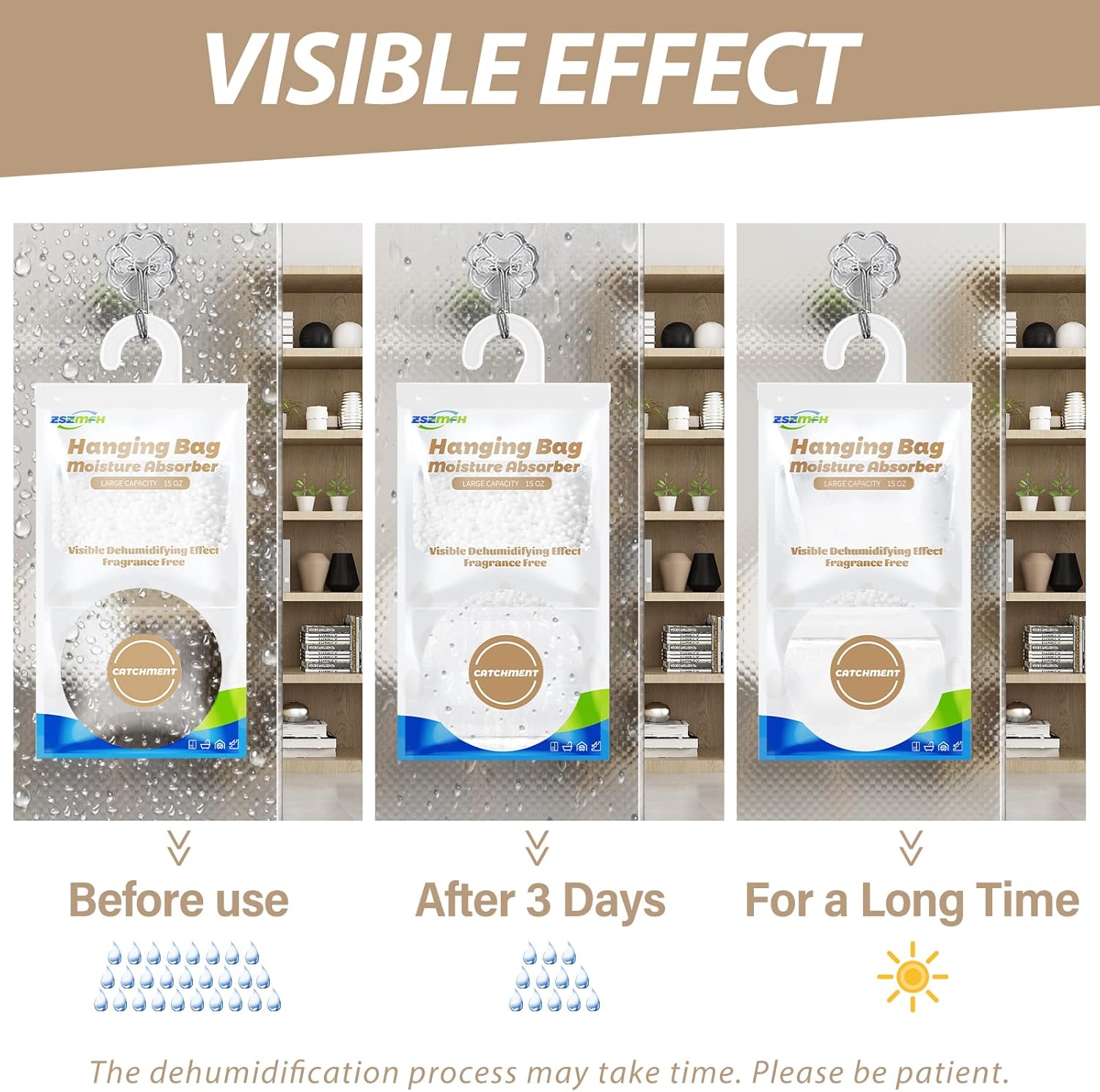 - ❤Effctive Absorbing (No Scent): Our moisture absorber hagning bag features a large capacity of 15 oz, Dehumidifier bags use Spherical calcium chloride to enlarge the area to absorb quickly,Protects clothes and items from excess moisture damage.