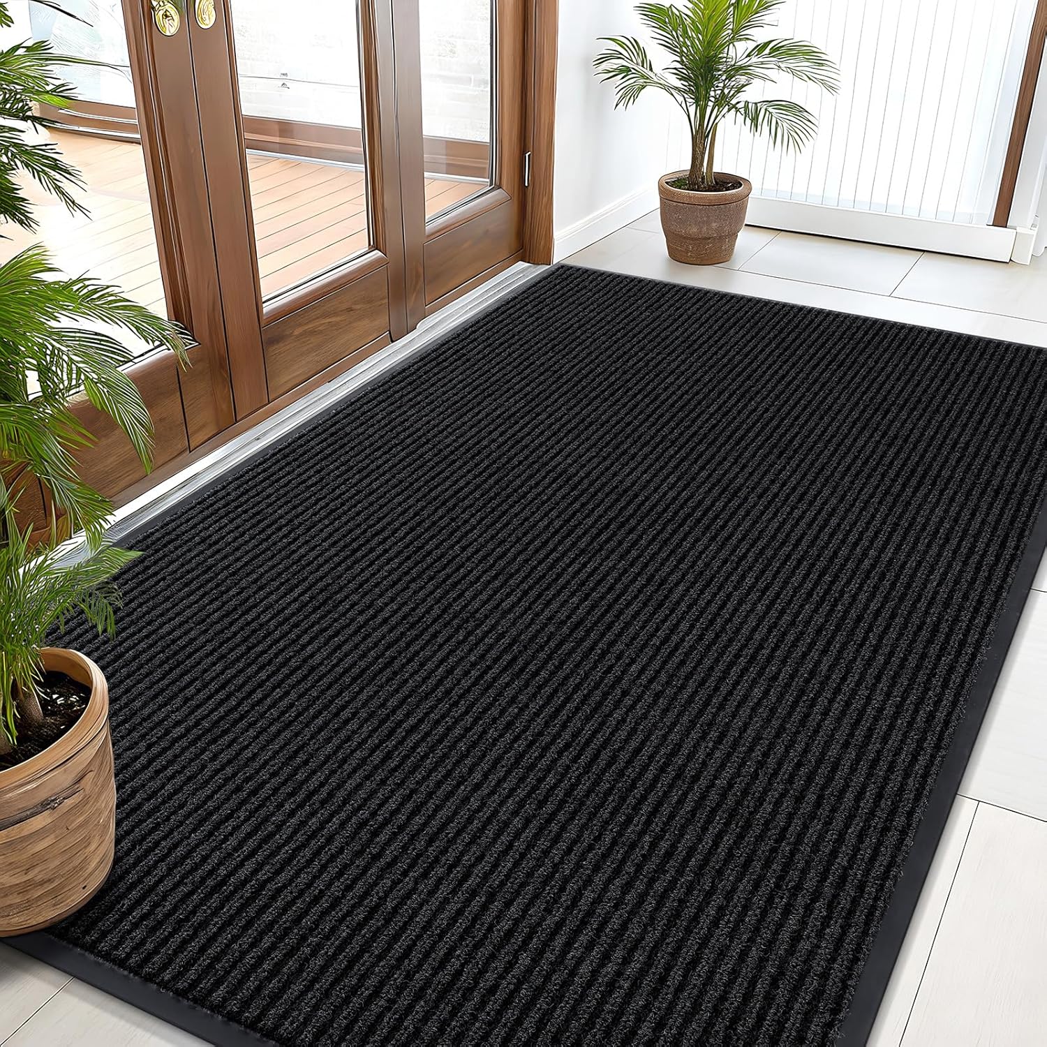 OLANLY Front Door Mat Indoor Outdoor Entrance, Waterproof Heavy Duty Doormat, Fade Resistant, Low Profile, Easy Clean Patio Porch Welcome Floor Mats for Entry, 59x35, Black