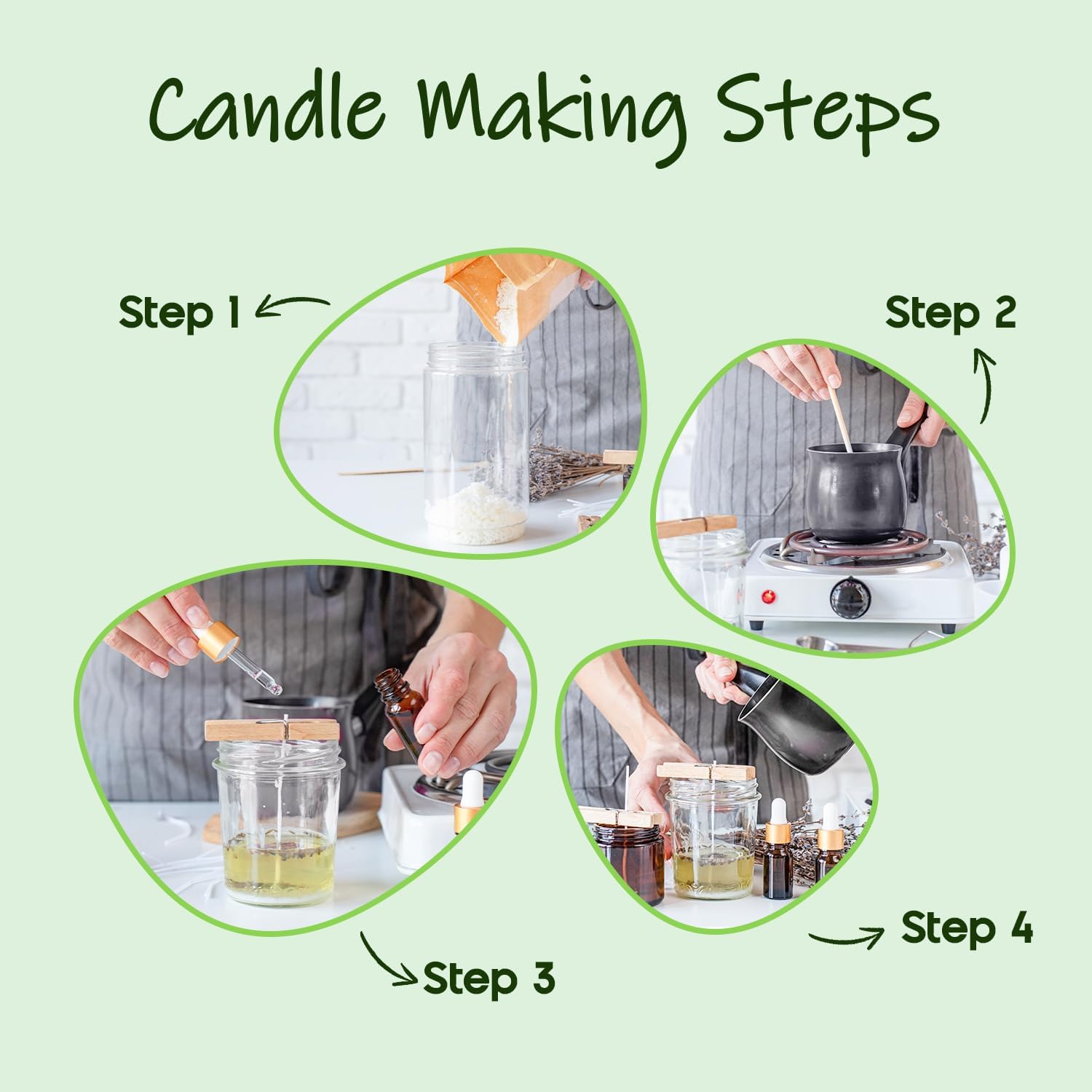 - [ Simple Candle Making ] Begin by melting the soy wax to the ideal temperature of 160-180โ degrees. Freely mix colors and fragrances, then slowly pour the mixture into molds, allowing it to cool. Easily enjoy creating perfect handmade candles.