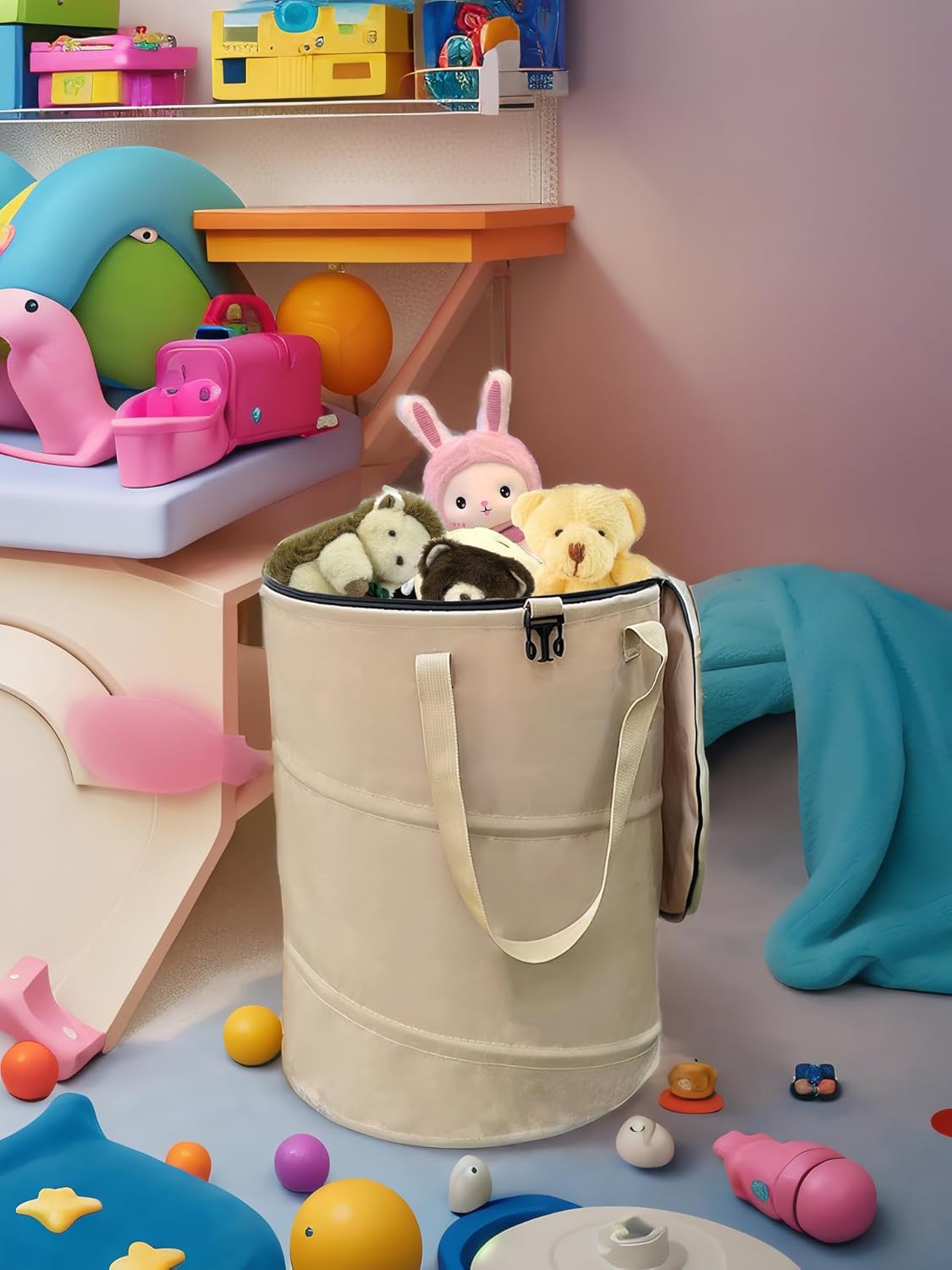 - This foldable camping trash can is the perfect choice for outdoor activities. Thick Oxford material with a lid design so you don't have to trap things falling out and other objects and animals getting in. The collapsible design makes it easy to store and carry, dirty clothes baskets, trash cans, storage bags, can be convenient outdoors, at home, fishing, collecting branches and leaves, etc.