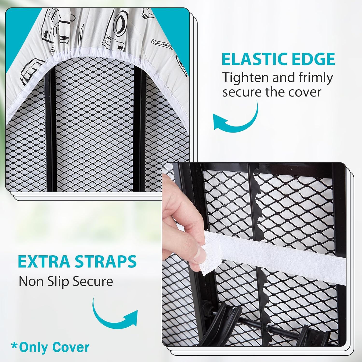 - SECURE ON YOUR IRONING BOARD TIGHTLY: The unique double non slip nose bag simplifies installation and secures it firmly in place. The elastic edge can tighten and straighten the ironing board cover to ensure that it is not easy to move or slide