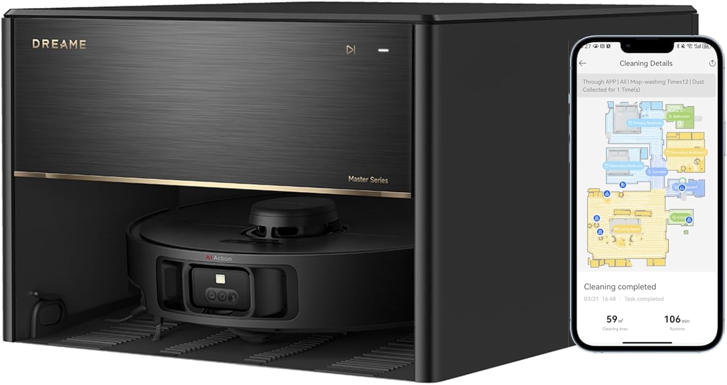 DREAME X40 Master Robot Vacuum Cleaner, 12,000Pa Suction, Auto Refilling & Draining, Smart Navigation, Mop Self-Cleaning, Pet-Friendly, 11 inch Compact Base, Alexa/Siri/Google Home Compatible
