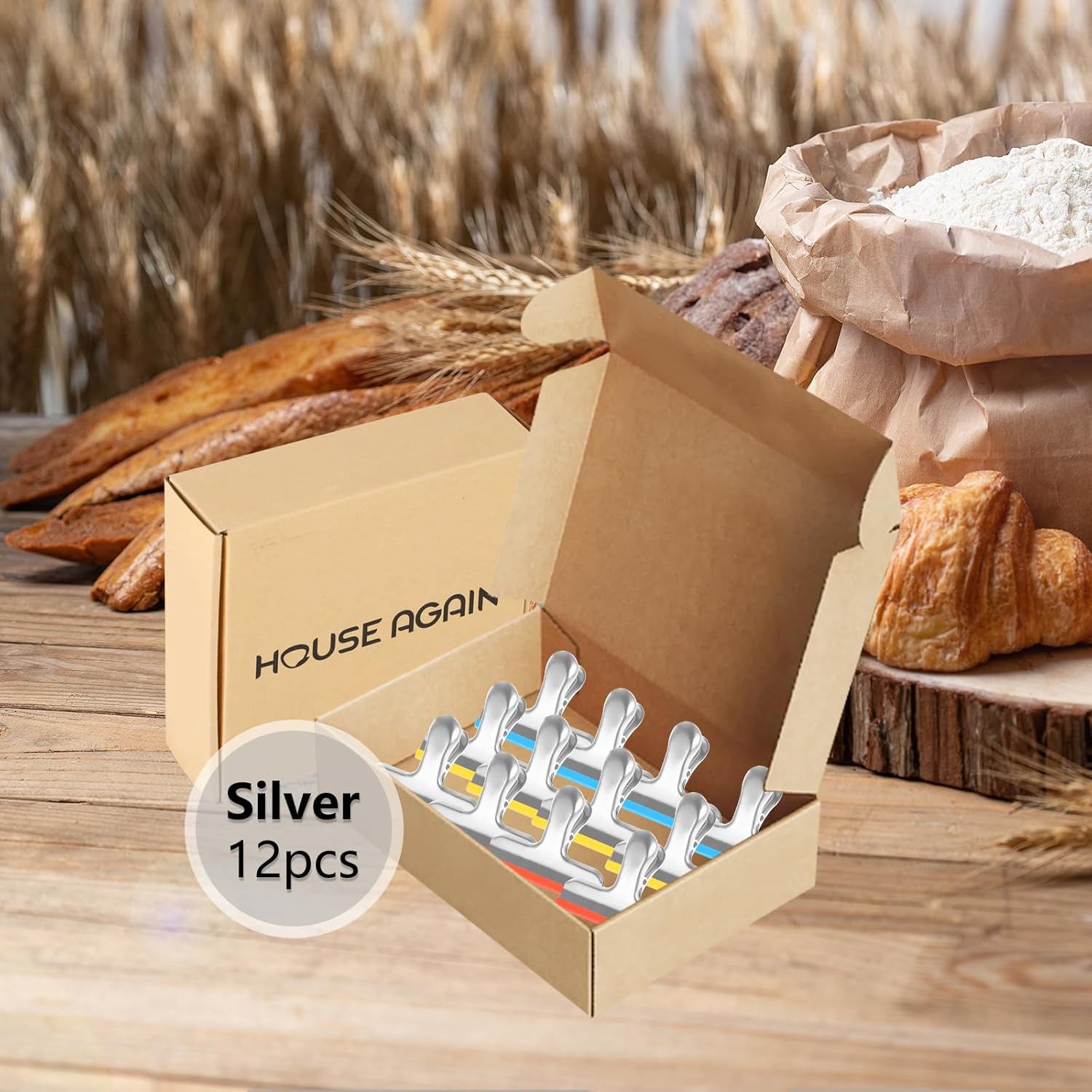 HOUSE AGAIN 12 Small Pack Stainless Steel Chip Bag Clips Covered with Silicone - NO More Sharp Edges - Color Coded for Food Bags - Air Tight Seal, Heavy Duty for Kitchen and Office, 2.5 Inches