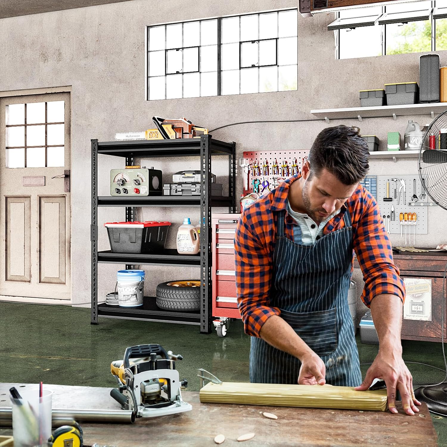 - 【Large Loads Capacity】 Made of all industrial grade metal, this 4-tier heavy-duty garage shelving holds 350 lbs each shelf and 1400 lbs in total. You're free to pile on tools, supplies, or whatever you need in your garage or warehouse