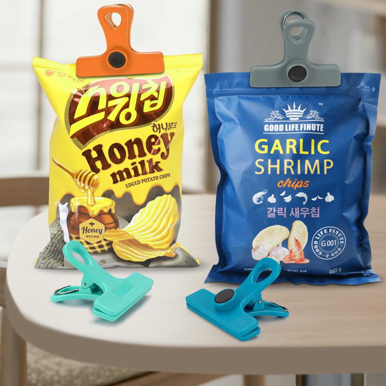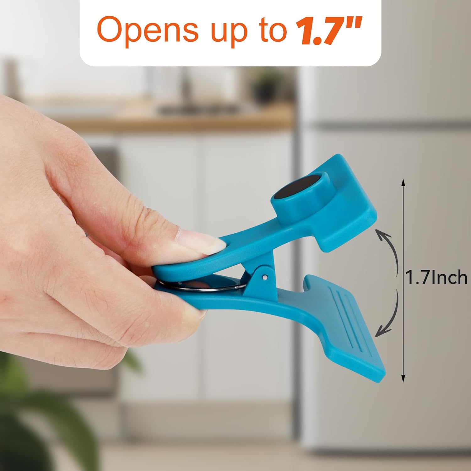 - 【Package Includes】8 pcs magnet bag clips (3.2" W x 2.6" L x 2" H) with 4 different colors – Blue, mint, orange, gray
