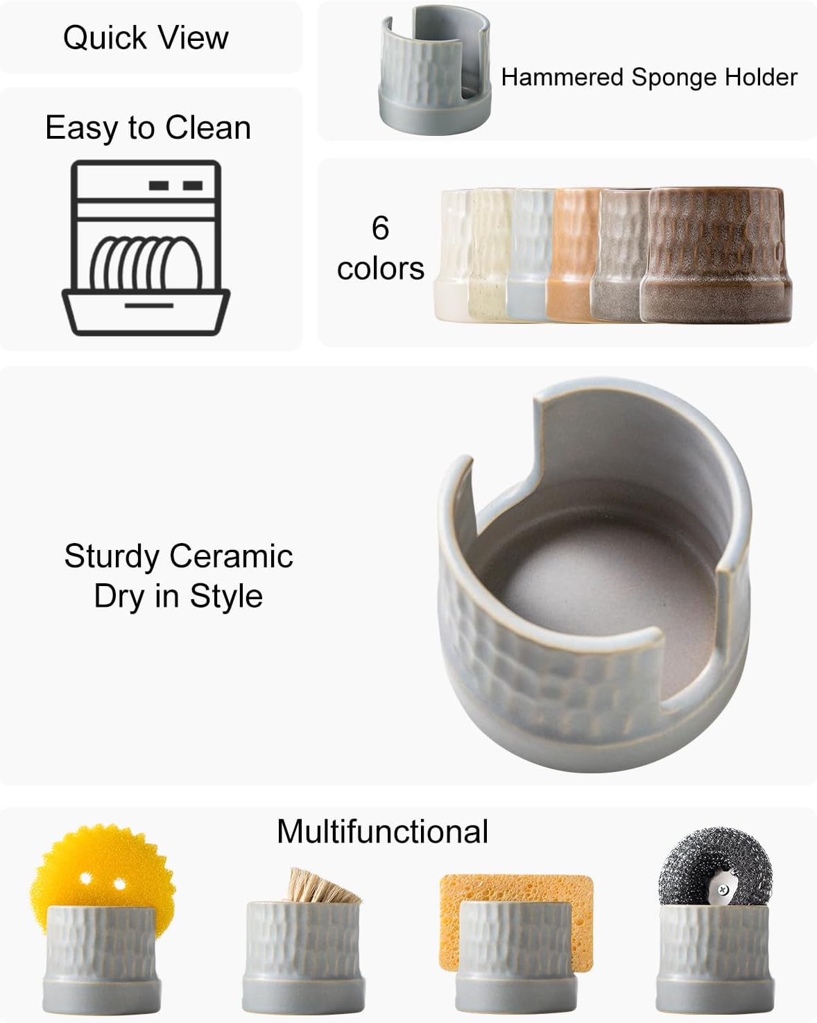 - Sturdy: The sponge rack is made of high quality ceramic material with a certain weight, and the base has a non-slip design to ensure that it does not easily move and cause mess when in use. it's simple to clean with just a quick rinse or a wipe-down. Enjoy a spotless sink area with minimal effort