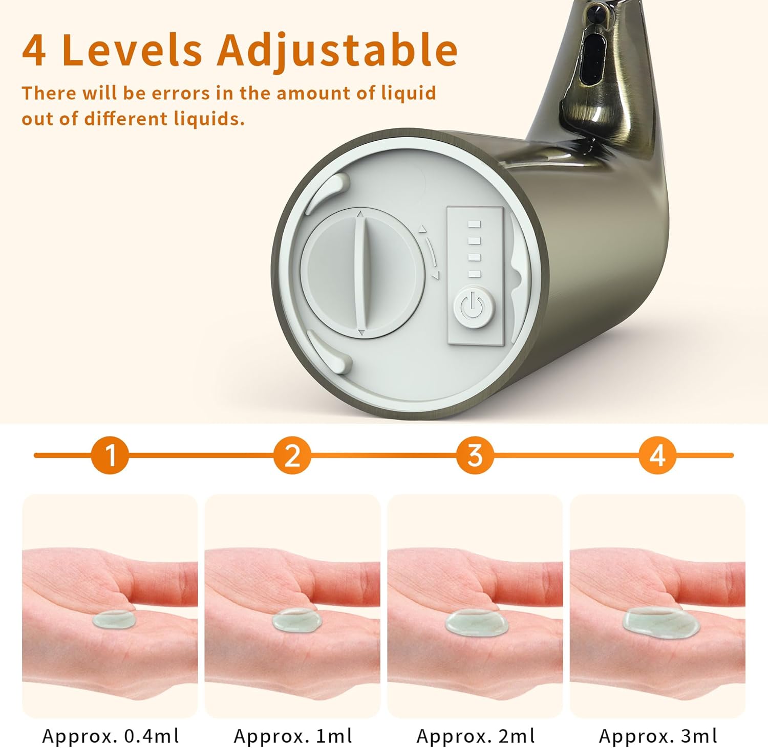 - 【Smart 4-Level Dispensing】This countertop soap dispenser offers 4 precision settings (0.4ml-3ml) - ideal for thick dish soap or light hand sanitizer. The kitchen dish soap dispenser helps reduce liquid waste while providing appropriate portions every time.