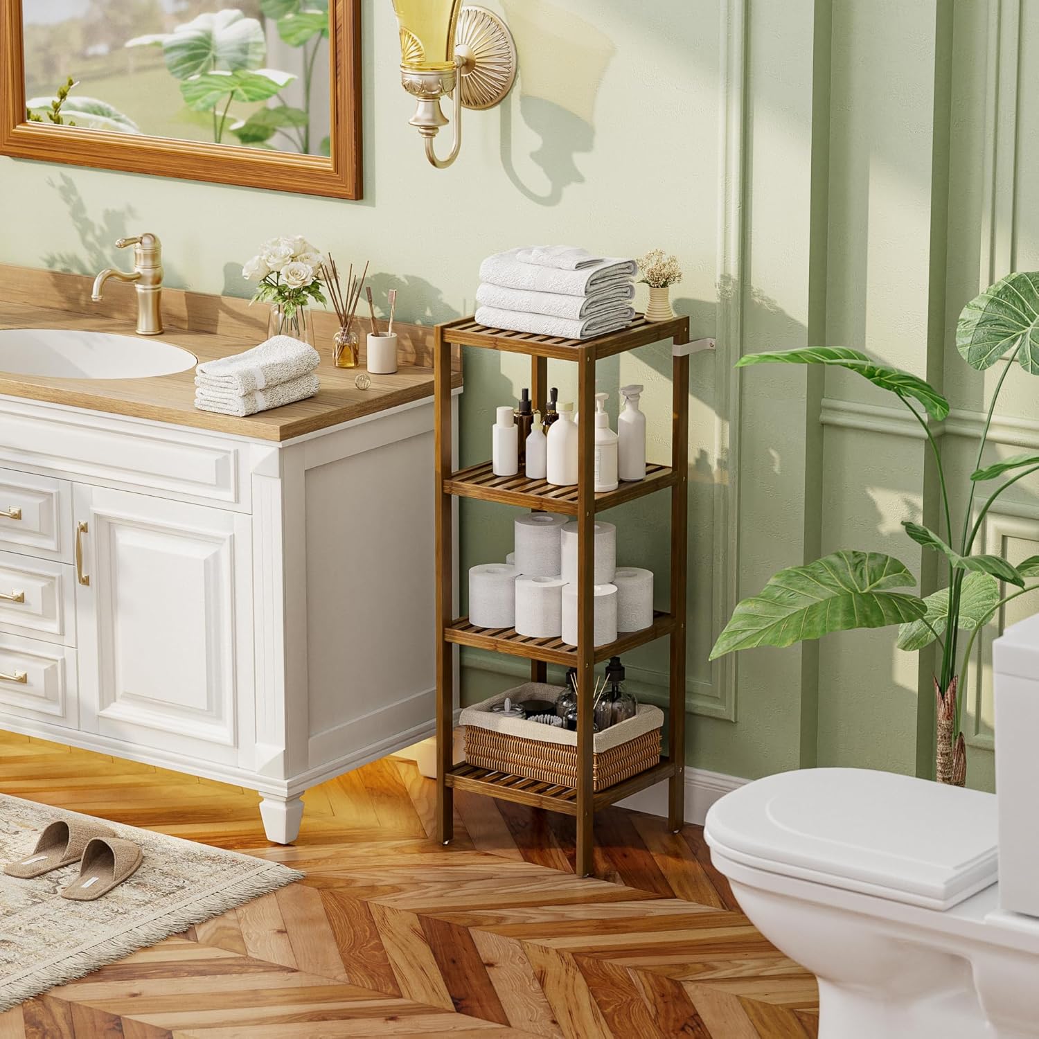 SMIBUY Bathroom Storage Shelf, 4-Tier Bamboo Rack Organizer, Multifunctional Shelving Unit for Living Room Bedroom Kitchen (Walnut)