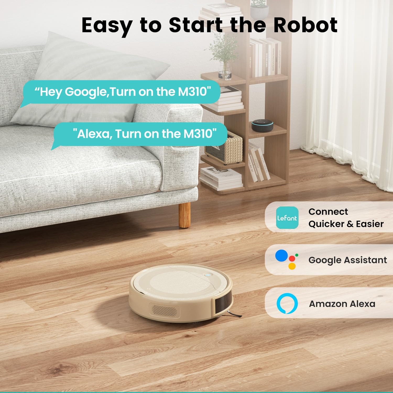 Lefant M310 Robot Vacuum Cleaner, 4500Pa Strong Suction with PreciSense Avoiding, Slim, Self-Charging, 160Mins Runtime, App/Wi-Fi/Alexa, Ideal for Pet Hair & Hard Floor Cleaning