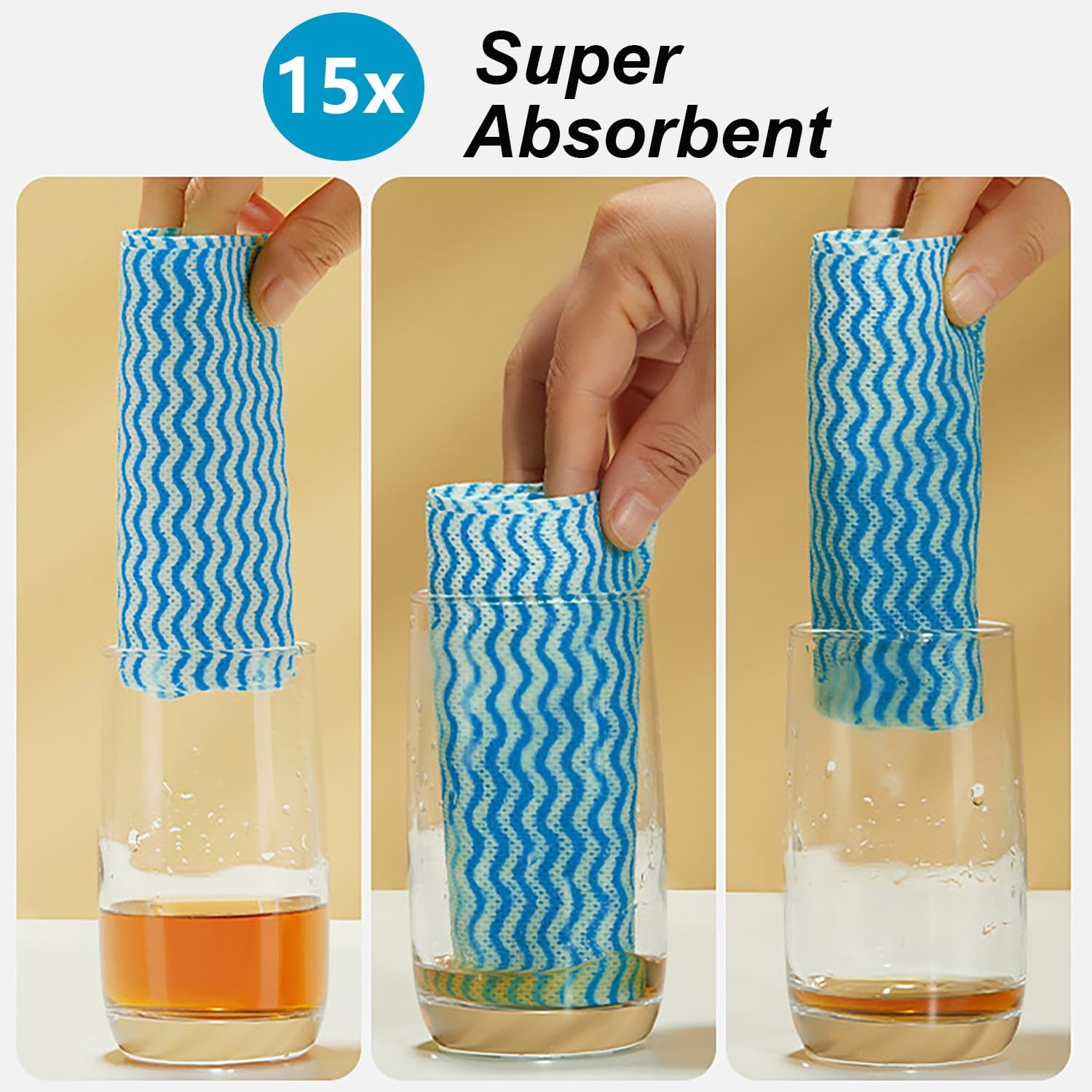 - These disposable rags are highly absorbent,which are 10 times more absorbent than ordinary paper towels,they can absorb water and oil quickly