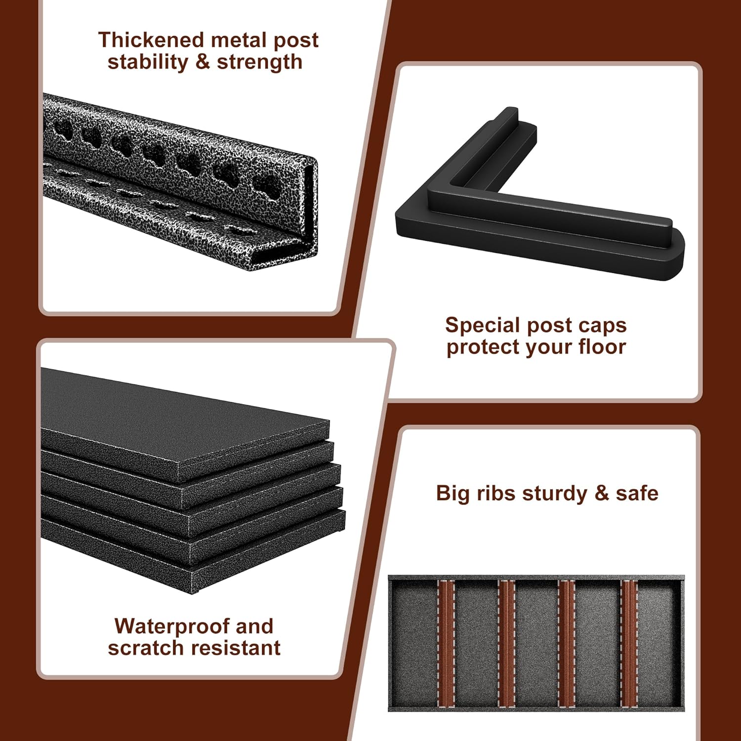 - 【Rustproof&Super Sturdy&No-Scratches】Compared with wooden storage racks, the metal shelving with anti-rust powder coating are more reliable and rust-proof without worrying about deformation.The top / bottom caps are covered on the post to protects your floor from scratches.