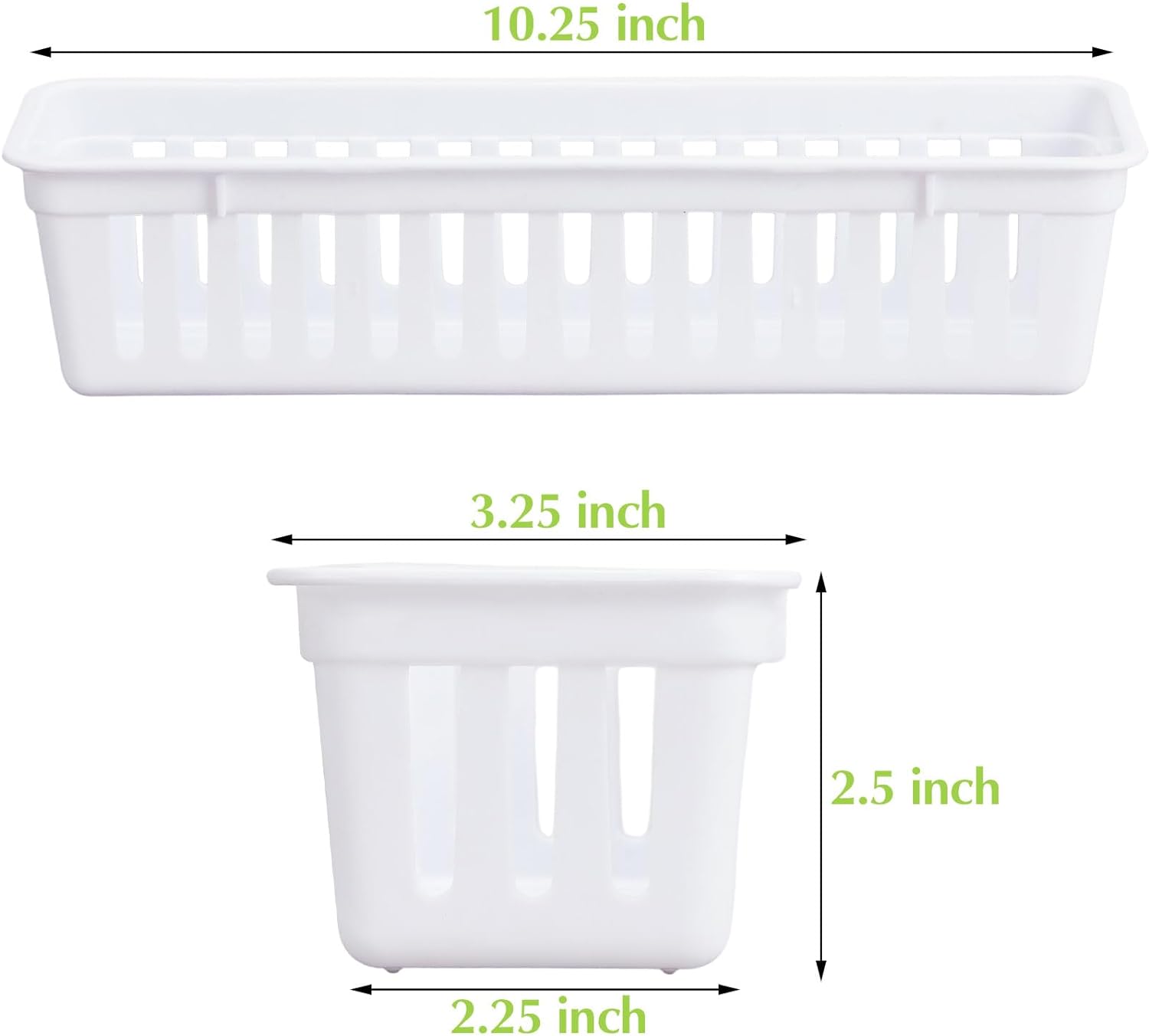 - Sleek Design Meets Nice Functionality: introducing our 12 pack of plastic storage baskets that meet most of your organizing needs; Crafted from durable PP plastic, they promise longevity combined with a stylish touch; The white and black color gives their sleek appearances and the dimension of about 10.25 x 3.25 x 2.5 inches/ 26 x 8 x 6 cm makes them the ideal organizer for those narrow spaces that are hard to utilize