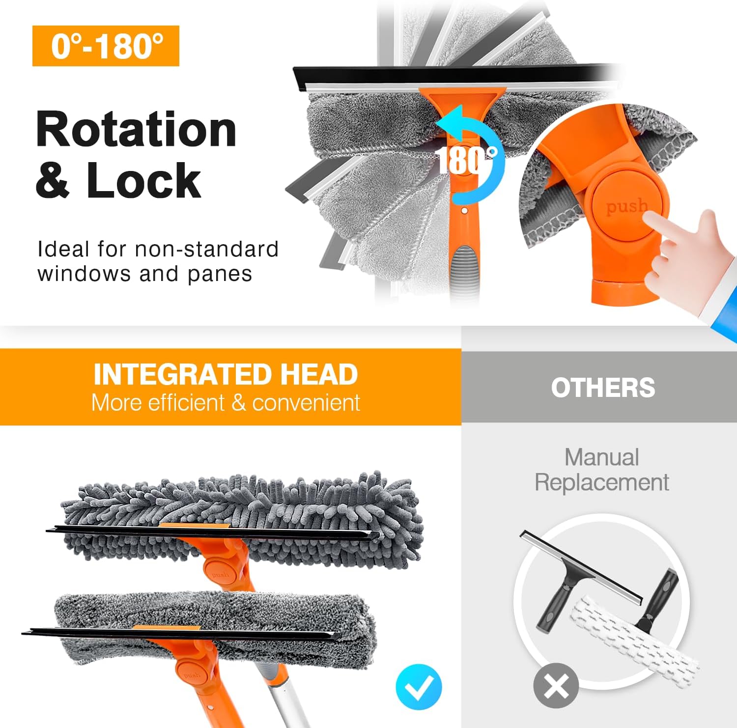 - 【Streak Free Squeegee】Enjoy a smooth squeegee glide. No streaks. The flexible head makes it easy to clean high-rise windows without walking, making cleaning windows a simple and fun thing to do.