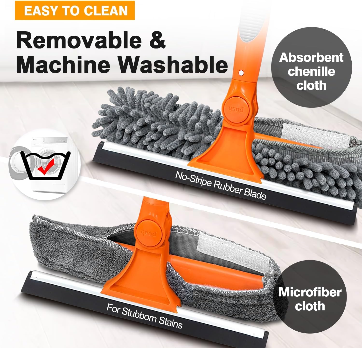 - 【Machine Wash and Detachable Cloths】Microfiber cloths are used to remove stubborn stains, are extremely absorbent and can quickly clean window surfaces, and the removable fiber cloths can be machine washed and reused.