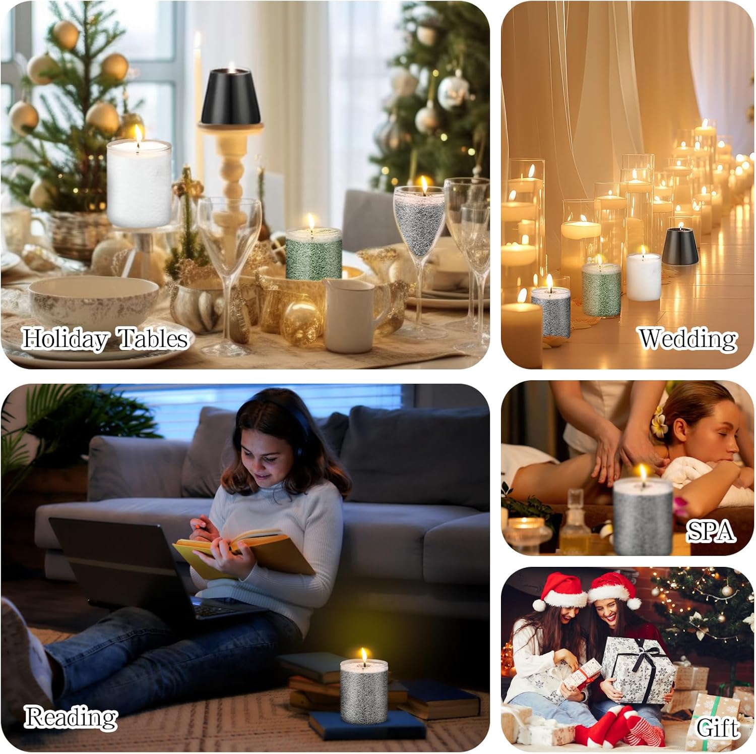 - Atmosphere Maker: our sand candles with wicks is suitable for most occasions due to its crystallization effect, such as reading, SPA, wedding, Christmas, Thanksgiving; It will provide you with a romantic and calm place for you to enjoy a comfortable life