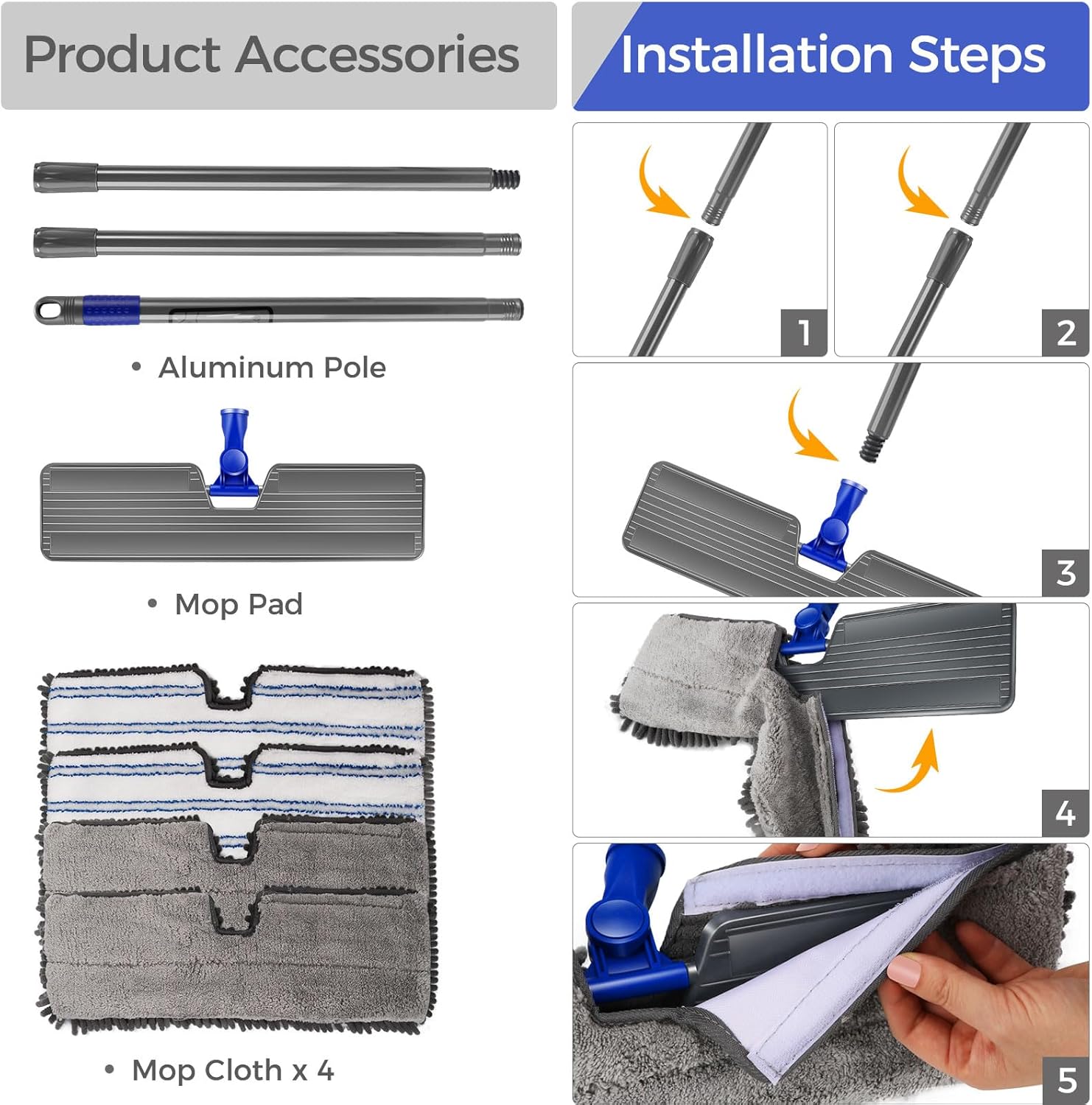 - [Efficient Deep Cleaning] The microfiber mop for floor cleaning comes with a 17-inch double-sided soft microfiber dust mop pad and a practical scraper.And the flat mop and scraper can quickly and effectively remove dust, pet hair, and debris from the floor and give you a clean and tidy floor.