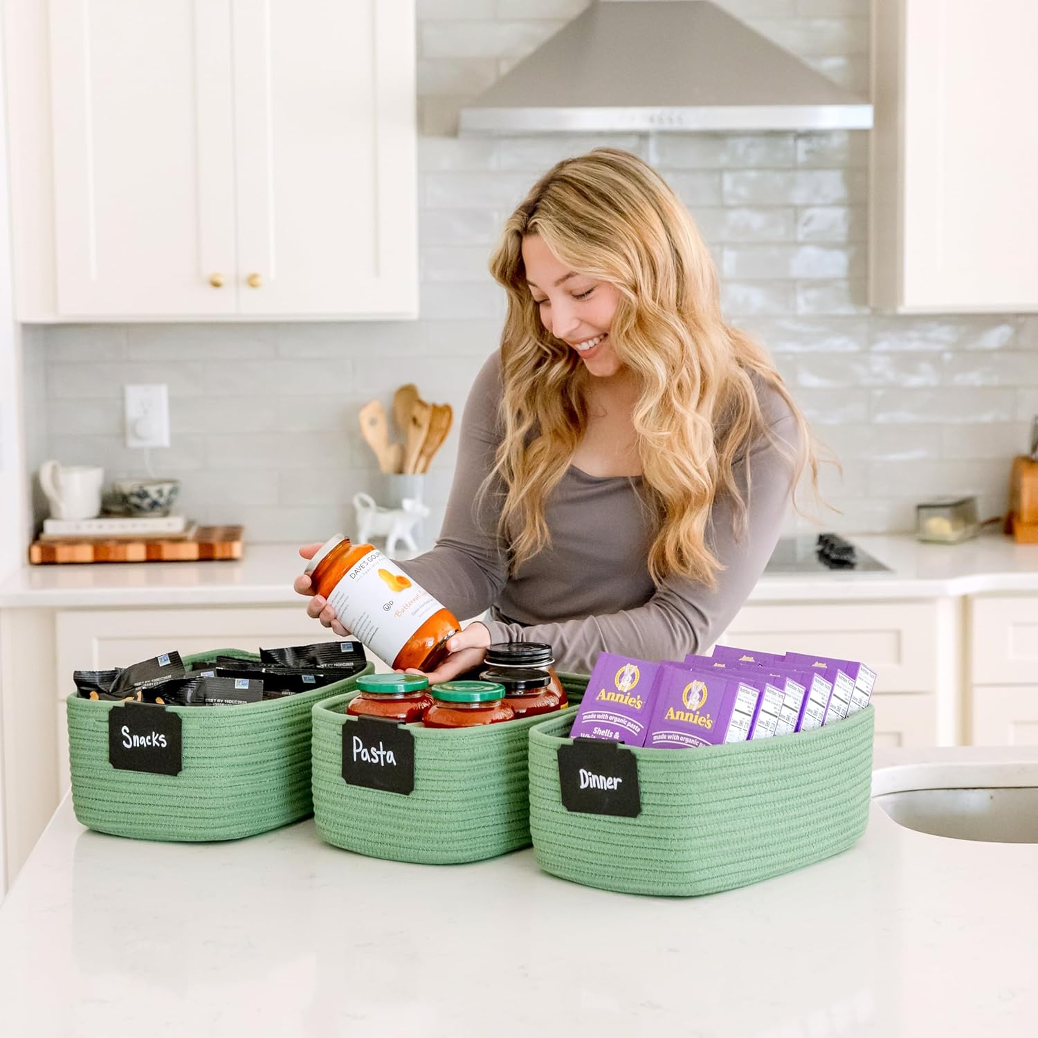 - Safe, Natural Cotton Organizer Bins: Crafted from the highest quality material in the market, our storage bins are oh-so-sturdy (and cute) and ready to take on little humans. They’re 100% safe, so you can rest easy if teething toddlers take a nibble. Reinforced Hidden Handles: Now you see ‘em, now you don’t! With completely hidden handles that blend seamlessly into the rope basket, you’ll be the Houdini of home organizing. They’re even double-stitched and reinforced for extra heavy loads!