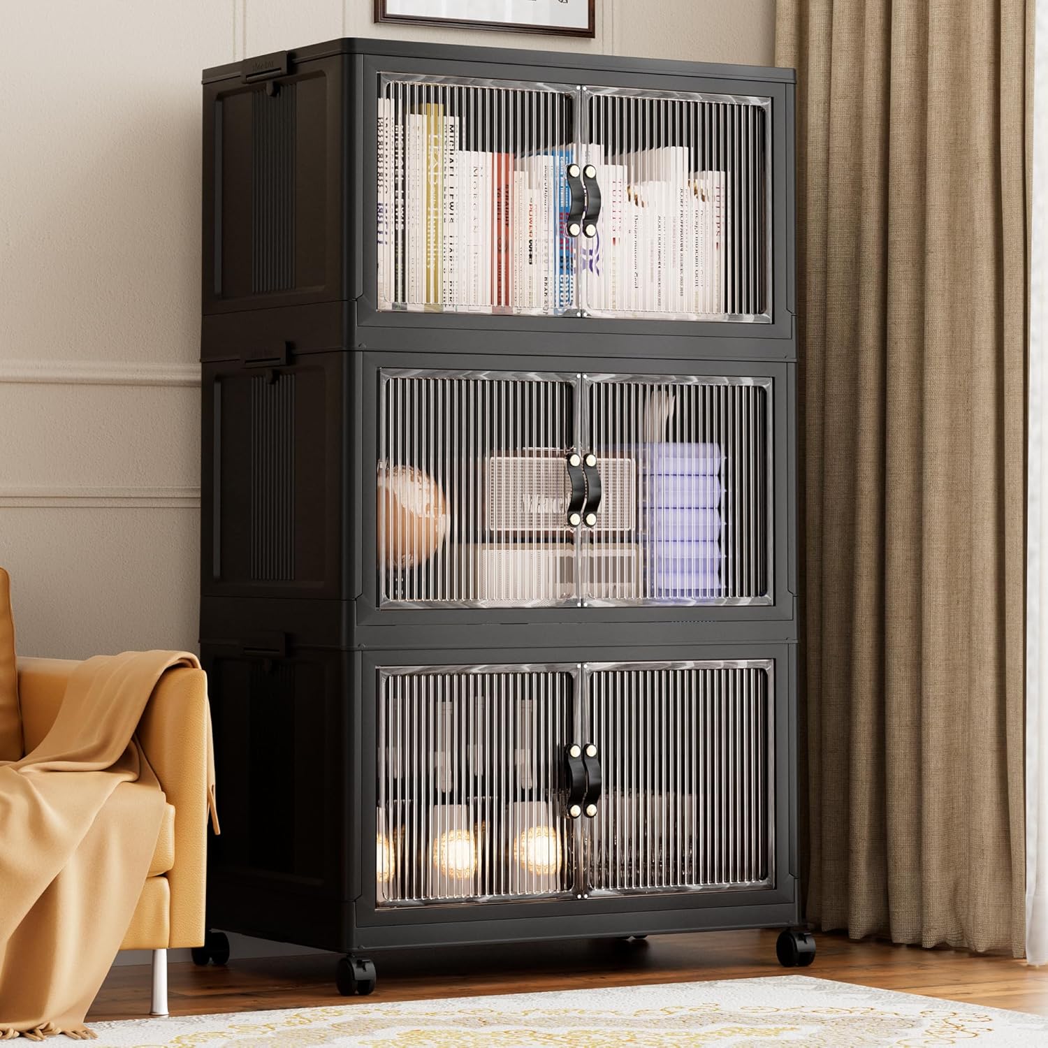 Jalove 88QT Plastic Storage Bins with lids, Stackable Collapsible Storage Containers with Wheels, Closet Organizer and Storage Drawers, Clothes Storage Cabinet for Home Office Garage, 1 Pack Black