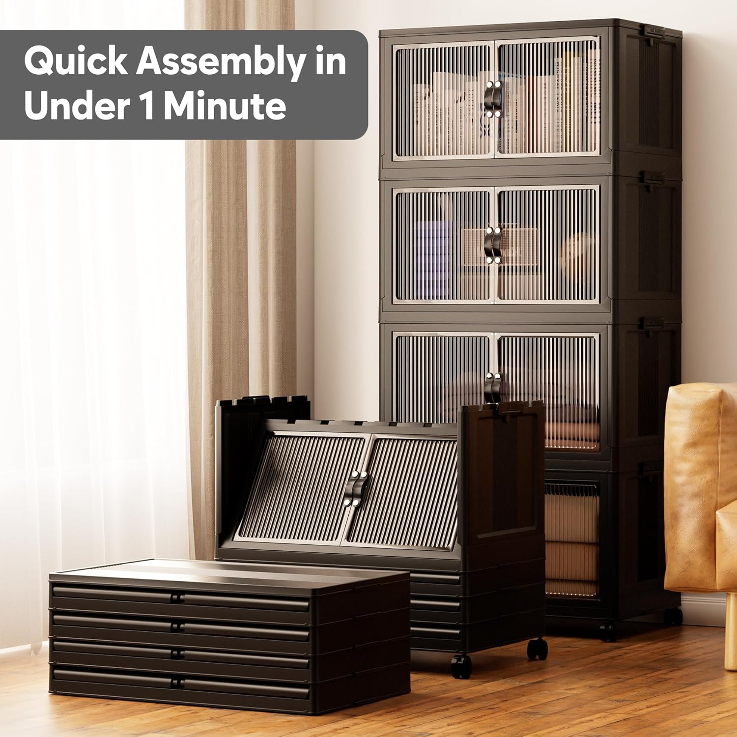 - 【Magnetic Doors & Rotating Wheels】The bins offer two opening options: front or top. The magnetic closure allows easy access. The 4 wheels make them easy to move, ideal for use in storage containers and closet organization in any room like your closet or bathroom.