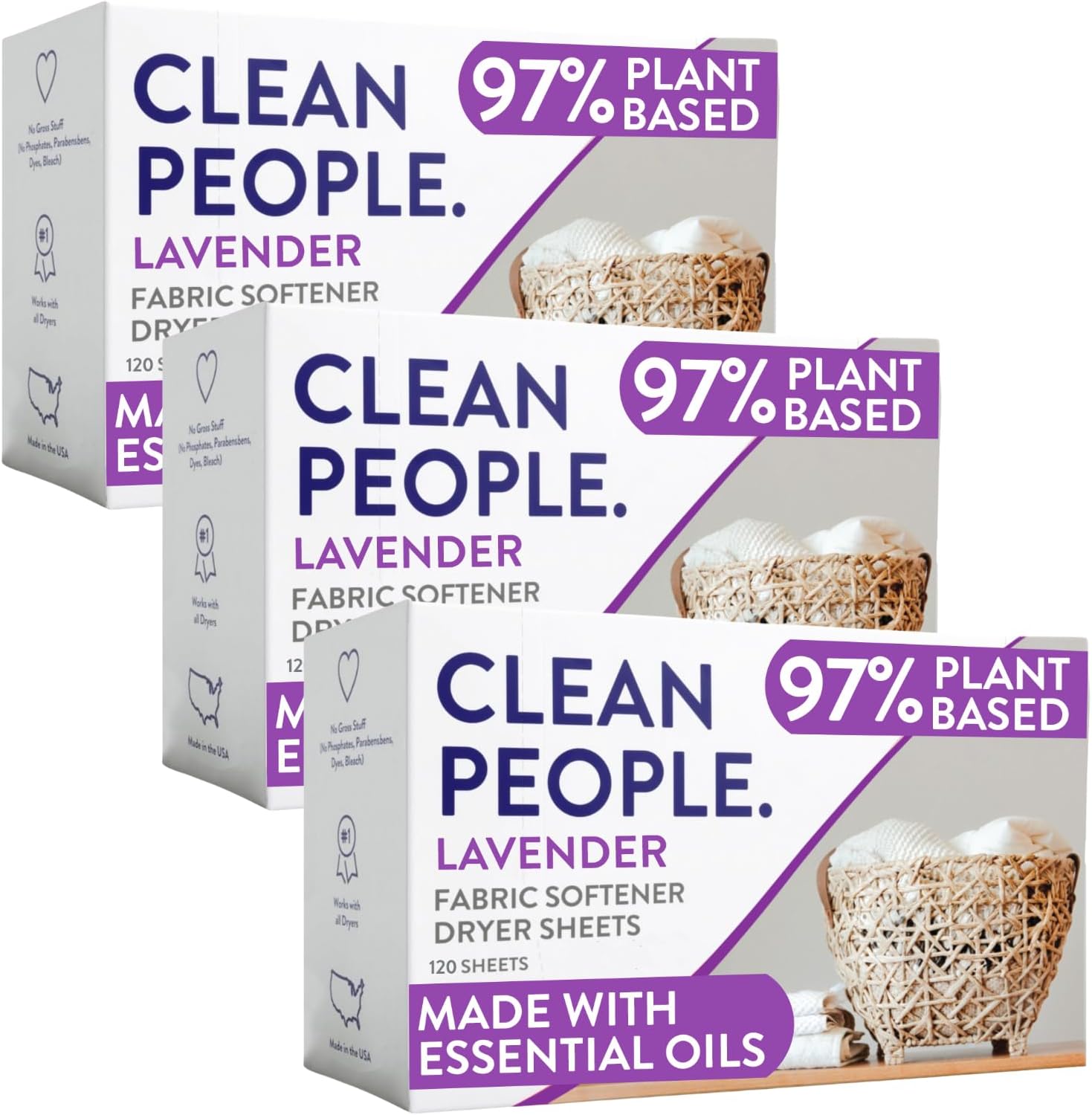 The Clean People Fabric Softener Sheets - Dryer Sheets - Softens & Removes Static Cling - Vegan Laundry Softener, Essential Oils - Lavender 360 Pack