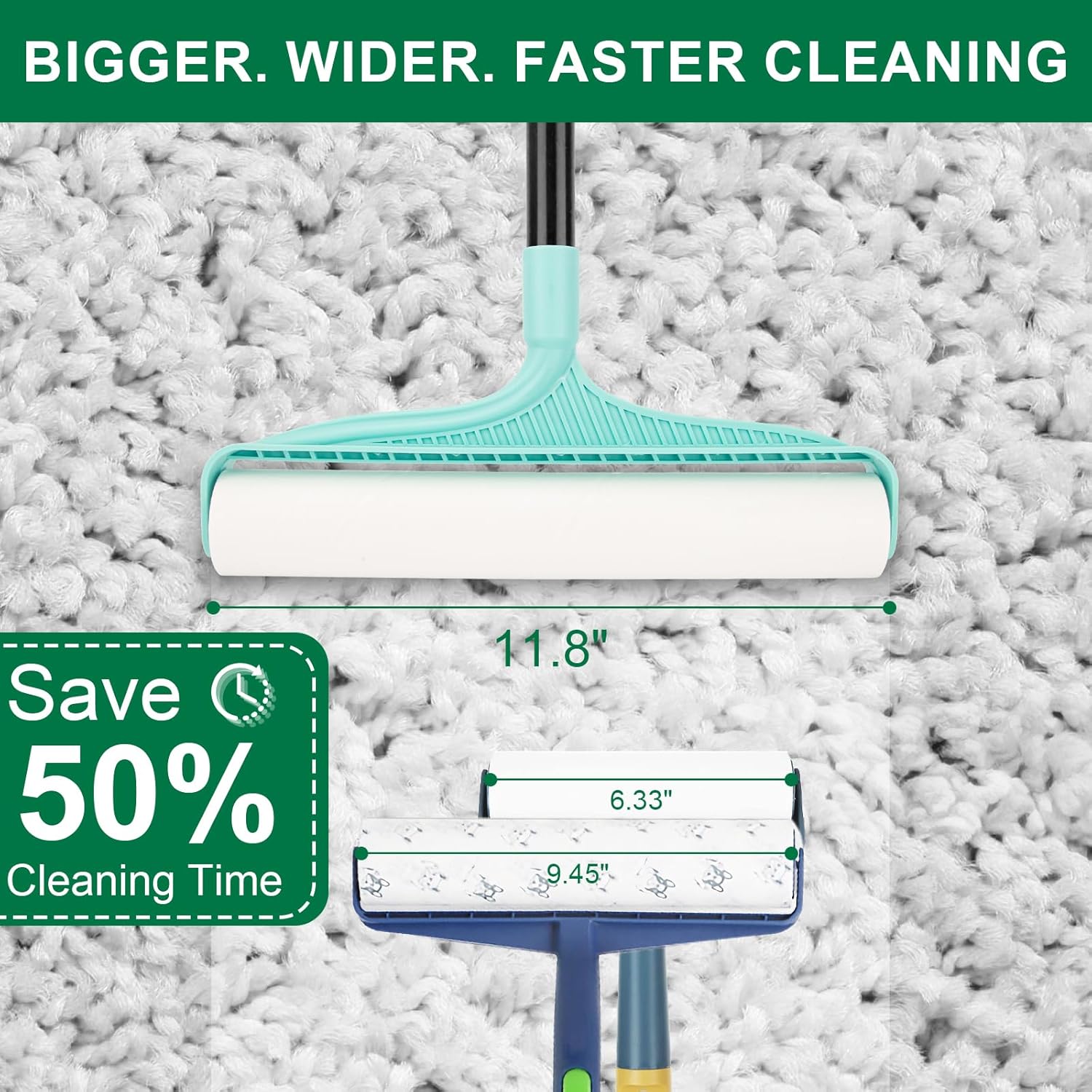- 🌟【Extra Wide 11.8" & 270 Sheets】 The floor lint roller with 2 lint roller refills total of 270 Sheets ,extra-wide 11.8" design makes cleaning pet hair and other messes fast & easy. effectively cutting your cleaning time in half. Lint roller refills measure 11.8" x 1.5". Refills(asin:B0DPH8WM76)