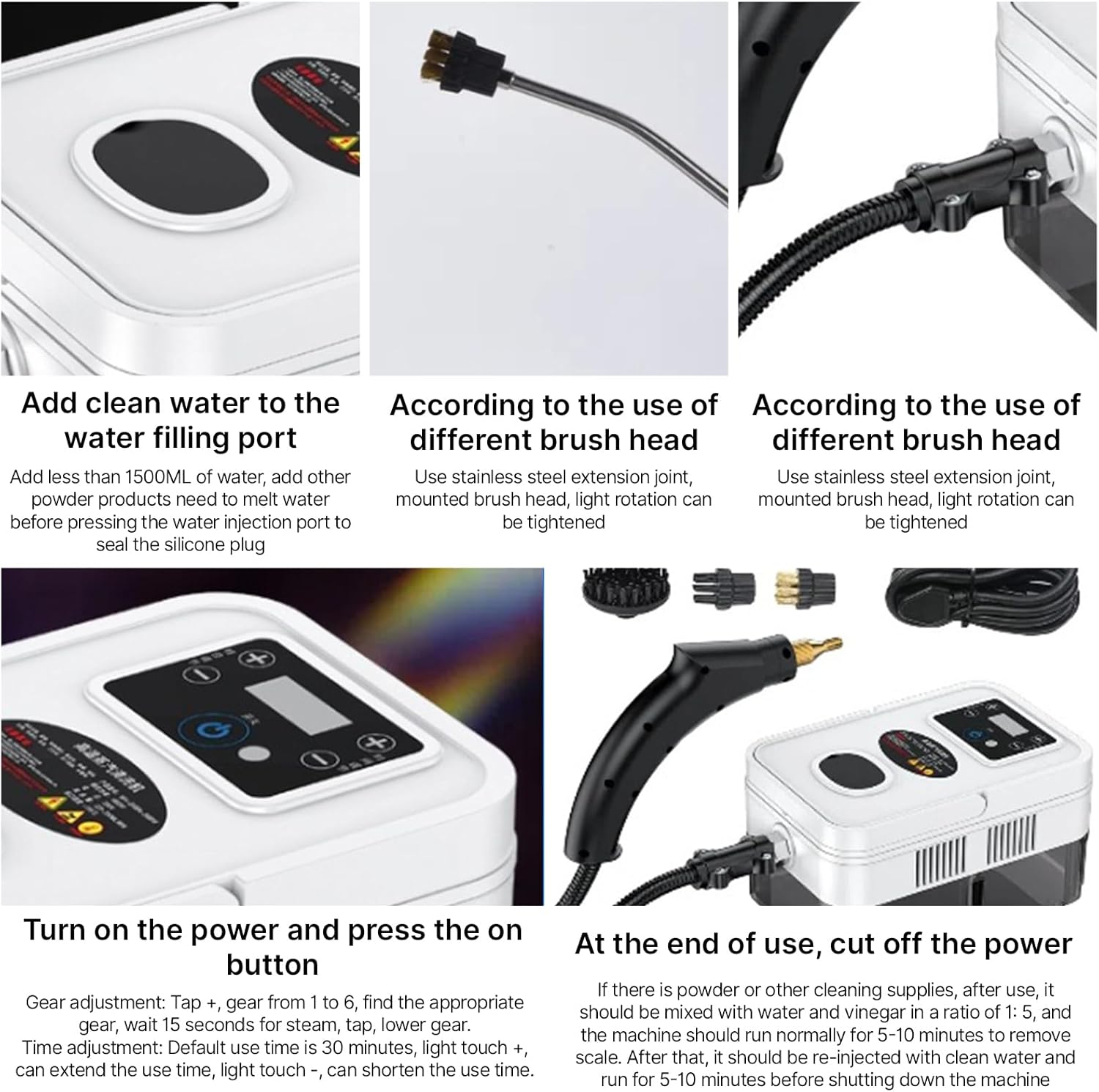 - 【Touch Screen and 6 Levels Adjustable】Steam cleaner with smart touch screen gears adjustment button, 6 levels adjustable. The screen will show the real-time use of gear.