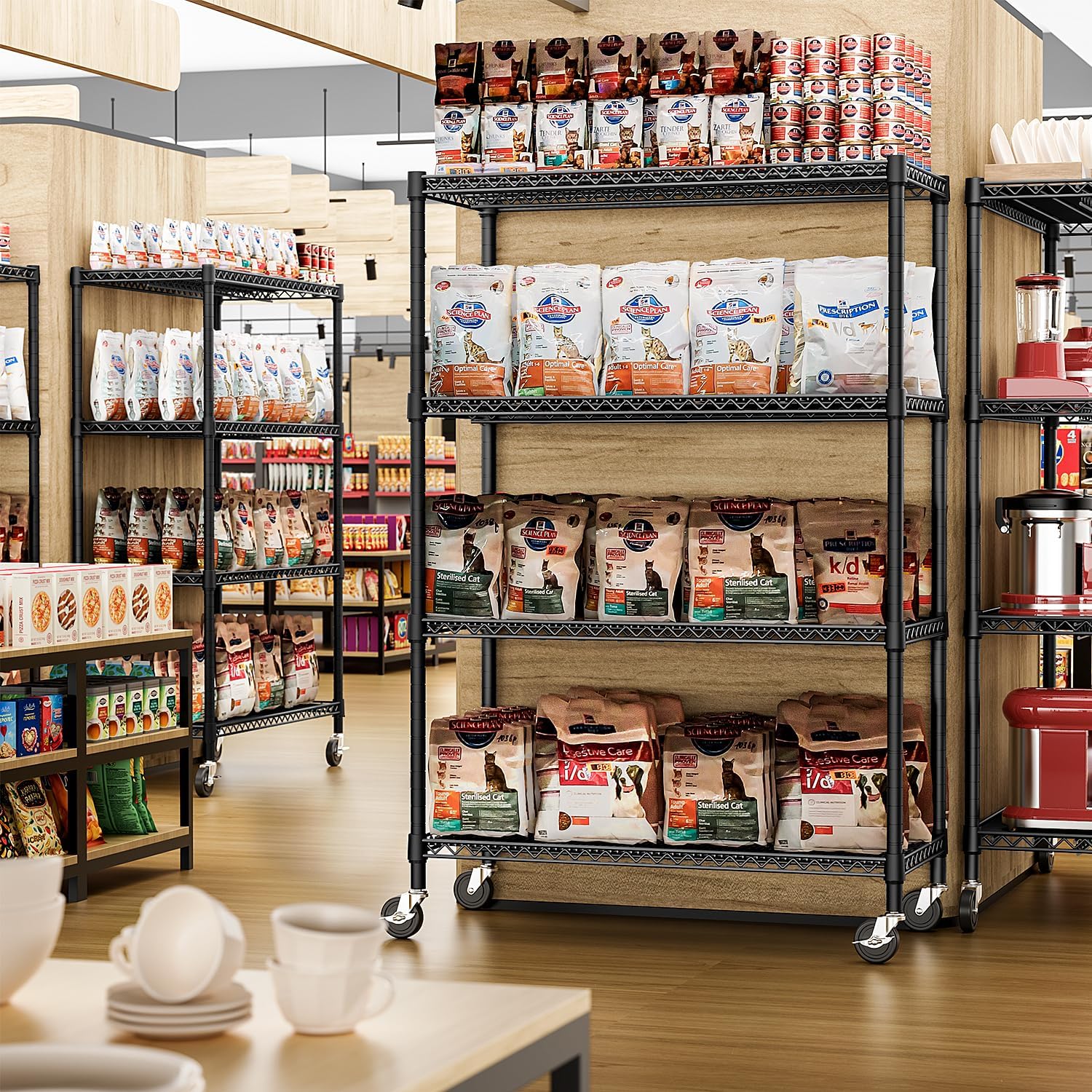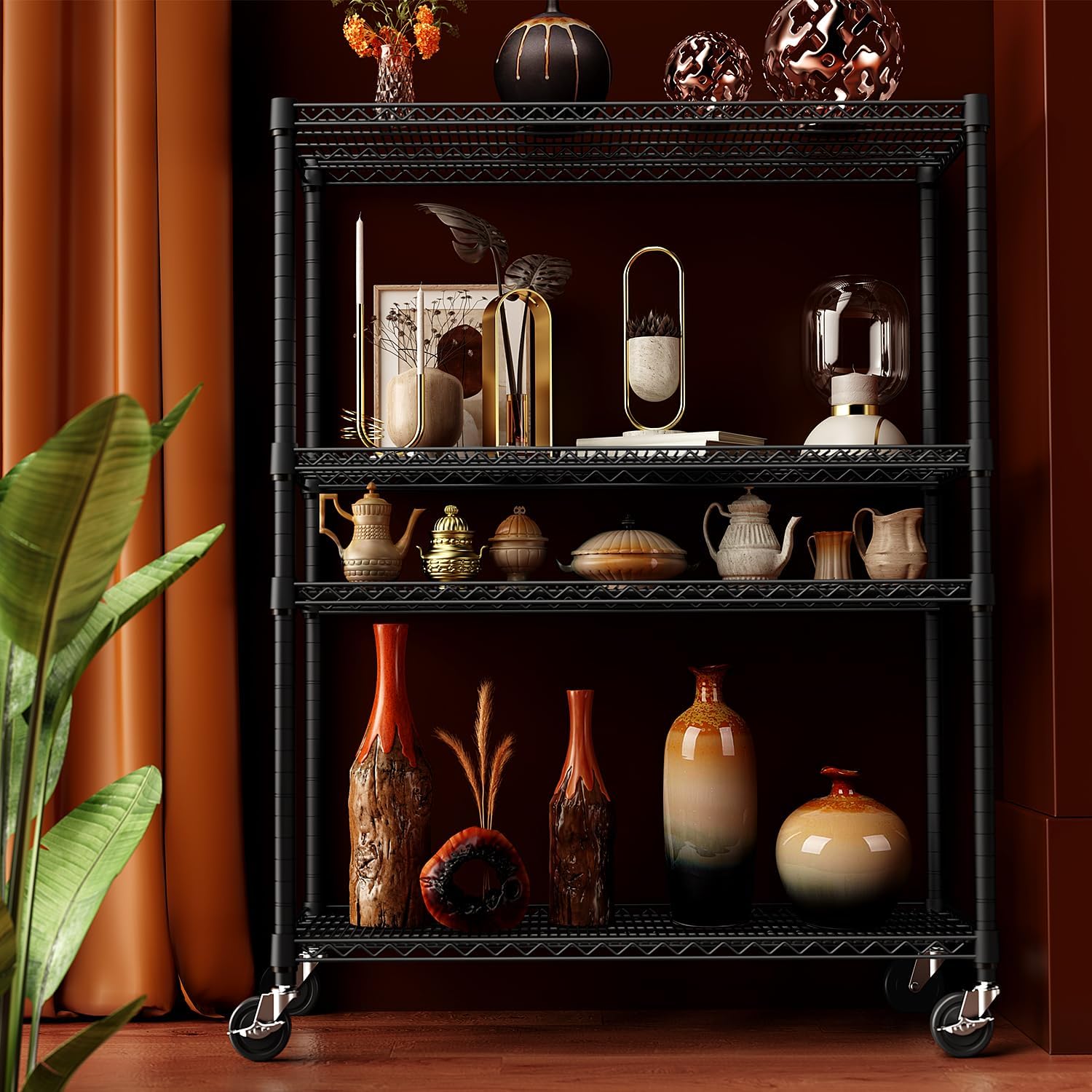 - COMMERCIAL GRADE HEAVY DUTY: Craft from study high-quality carbon steel and 25.4mm metal rods, each shelving unit has a maximum capacity of 660LBs on leveling feet, with a total capacity of 2200LBs (Approximately 530 LBs on wheels.)