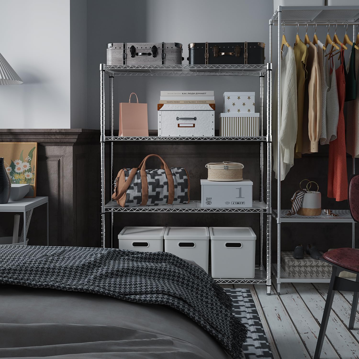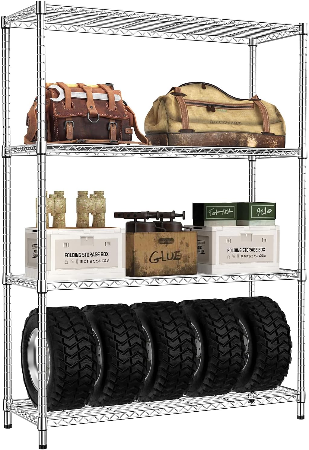 IZEUK 1400 LBS Garage Chrome Shelving Wide Storage Shelves 4 Tier Adjustable Heavy Duty Metal Wire Rack Standing Shelf Unit for Kitchen Office College Dorm Garage Warehouse 15.8" x 45.8"x 59.4"