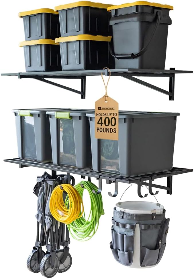 - HEAVY-DUTY STORAGE SHELVES – This 2-pack of wall-mounted garage shelves offers dependable, space-saving storage for any setup. Available in a range of sizes to suit your space, each shelf supports up to 200 lbs—ideal for storing bins, tools, tires, and gear. A solid pick for maximizing wall shelves in your garage, shed, or utility room.