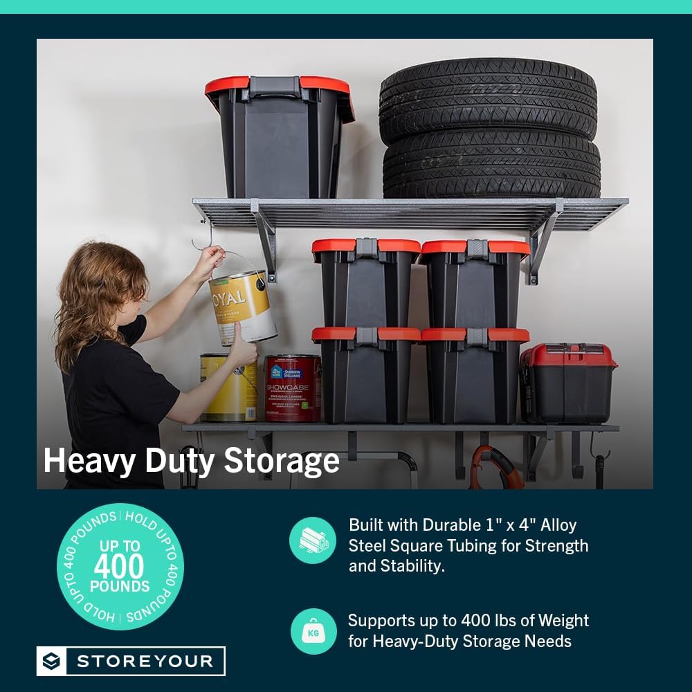 - HEAVY-DUTY STORAGE SHELVES – This 2-pack of wall-mounted garage shelves offers dependable, space-saving storage for any setup. Available in a range of sizes to suit your space, each shelf supports up to 200 lbs—ideal for storing bins, tools, tires, and gear. A solid pick for maximizing wall shelves in your garage, shed, or utility room.