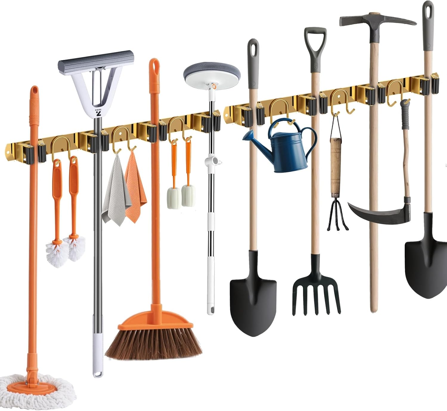 - Spacious 6-Hook Mop Holder: Features 4 slots and 6 hooks with smart spacing (5.12" slots, 4.72" hooks) for maximum storage. Saves space while holding multiple brooms, mops and tools effortlessly