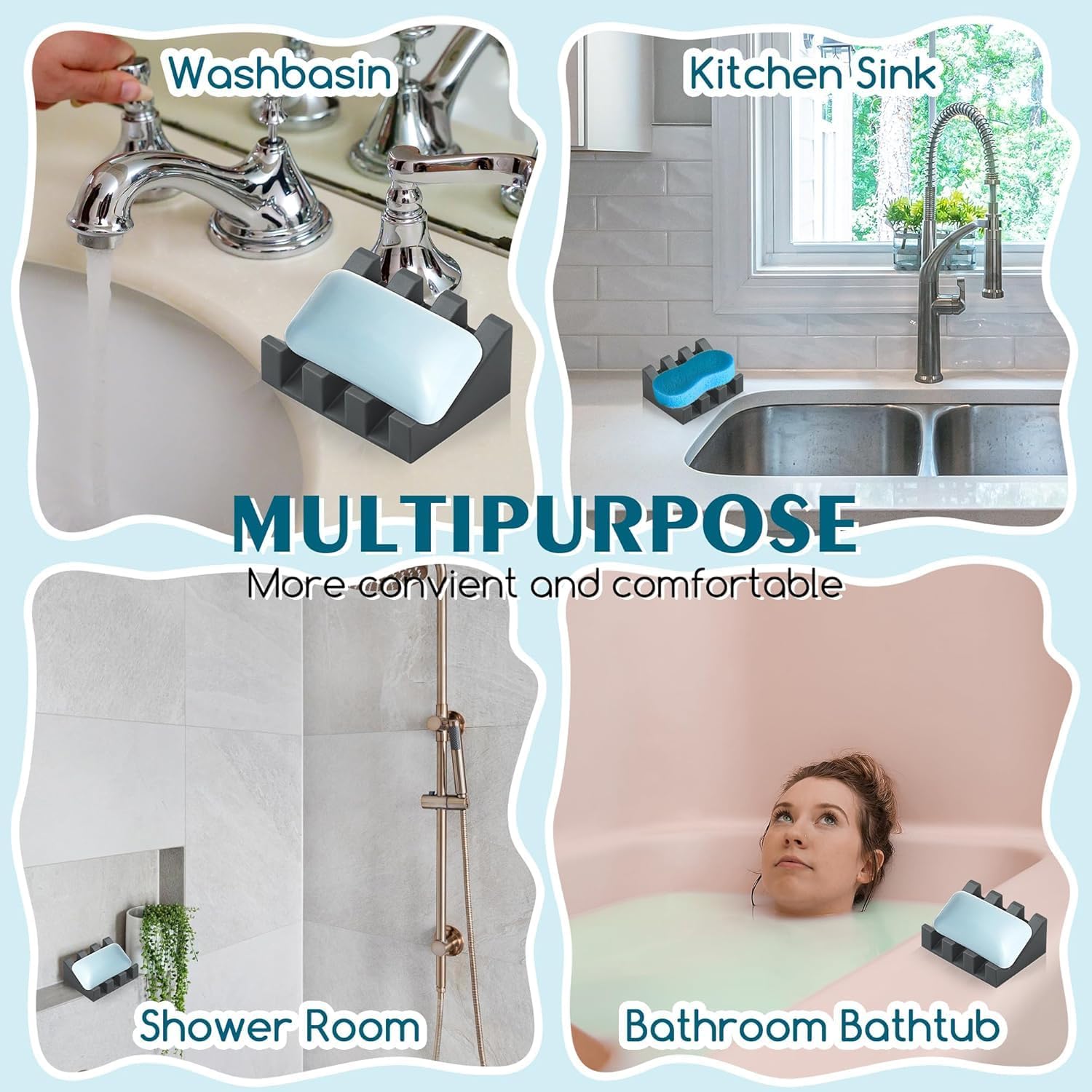 - Premium Material:Our soap savers is made of high quality soft silicone, non-slip and durable, flexible to the touch, easy to clean, and won't break, it is a great soap saver or dish washing sponge holder!