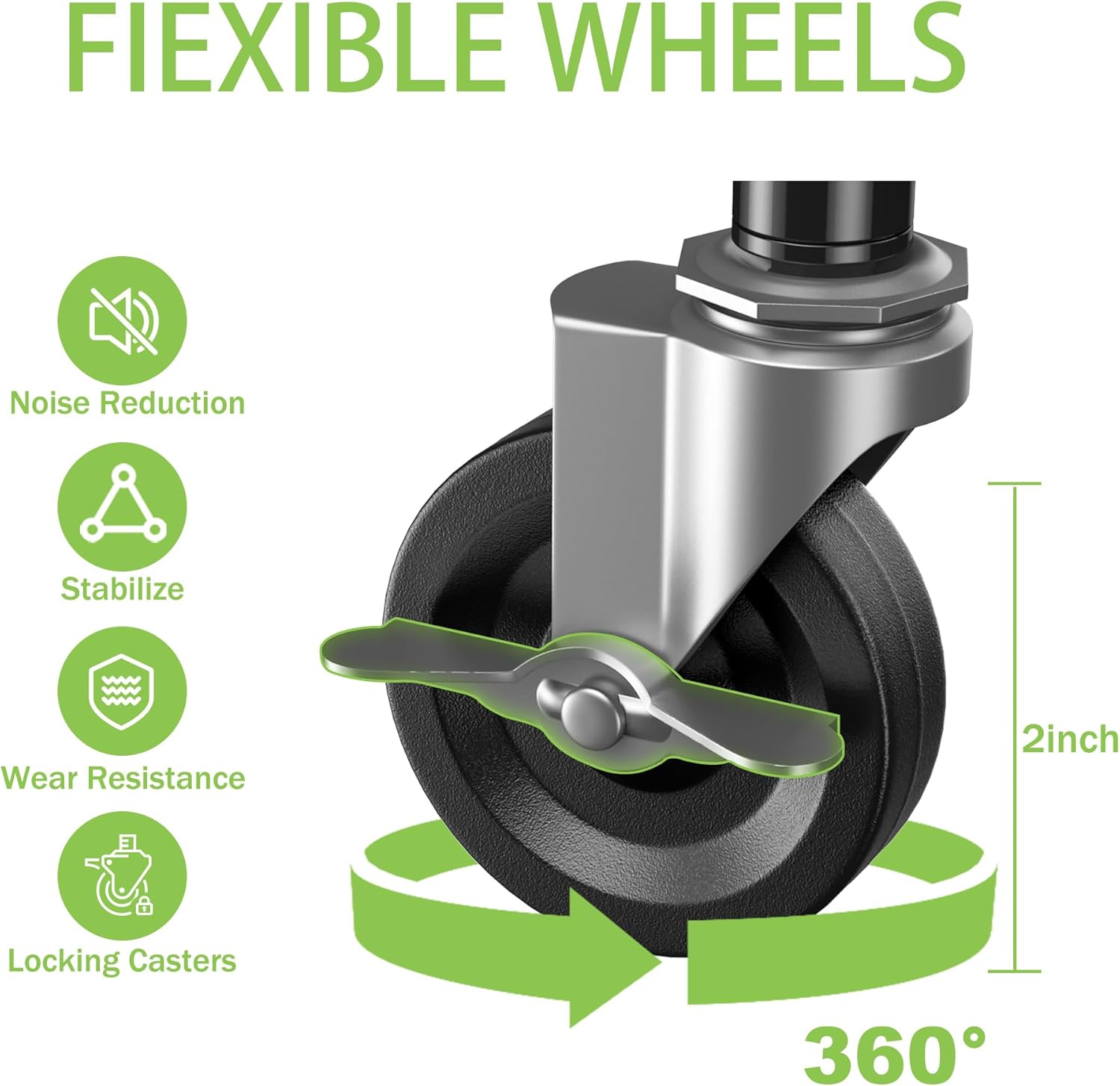 - 【360° Casters & Fixed Locks】3 Tier Rolling Utility Cart is equipped with 2-inch industrial-grade silent universal casters, which facilitates easy and smooth movement on different terrains, including two wheels with fixed locks, which can be fixed or moved at any time to ensure stability and safety during use