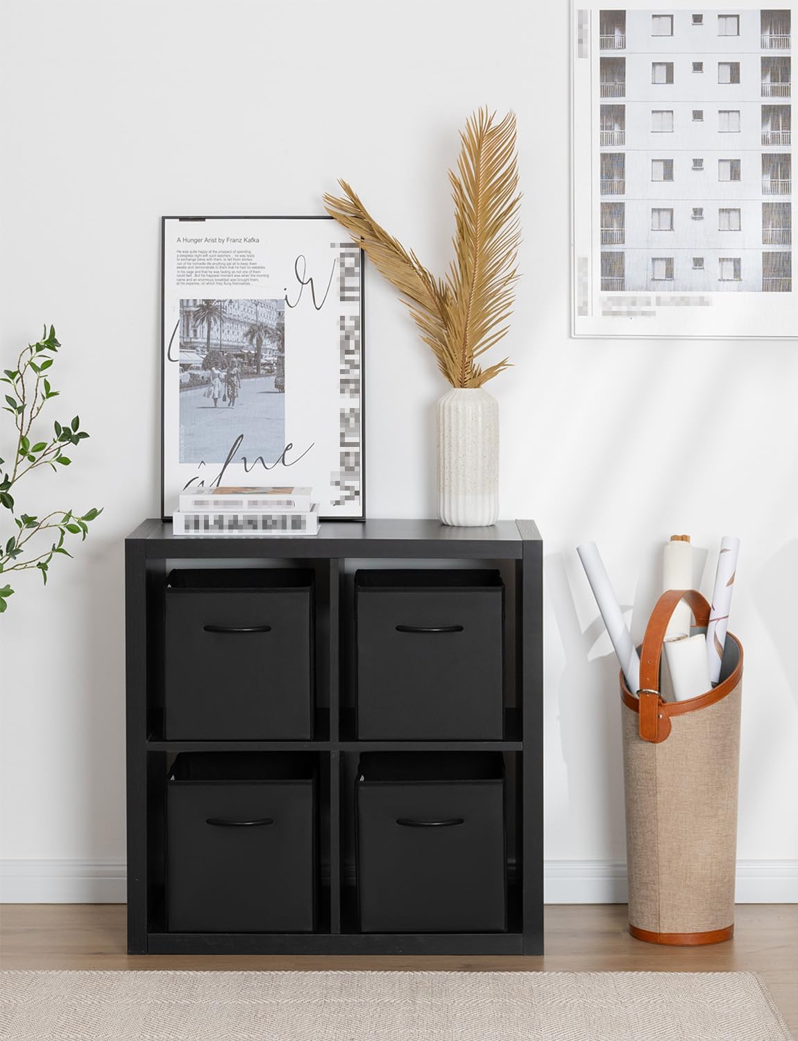 StorageWorks Black Storage Cubes, 11-inch Leather Bins with Handle, Cube Organizer Baskets for Shelves and Closet, Collapsible Storage Bins, 4-Pack