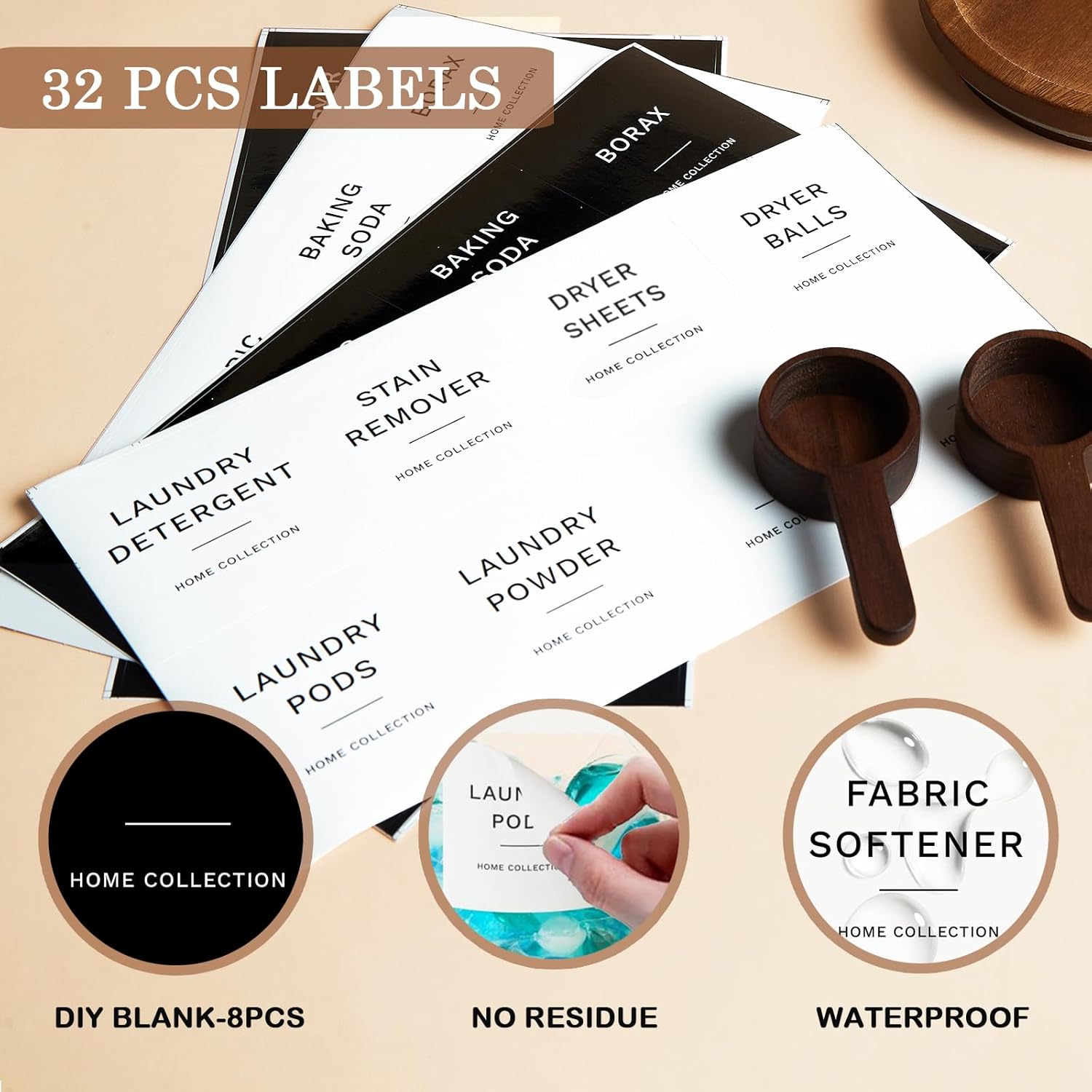 - Designer style labels: Our minimal design laundry label gives this product the extra wow factor. Each set comes with 16 white minimalist laundry labels and 16 black modern labels covering all the key items for your laundry needs (24 preprinted plus 8 additional write-in labels). Made from premium, self-adhesive polyester, these labels are both waterproof and oil-resistant, ensuring long-lasting use.
