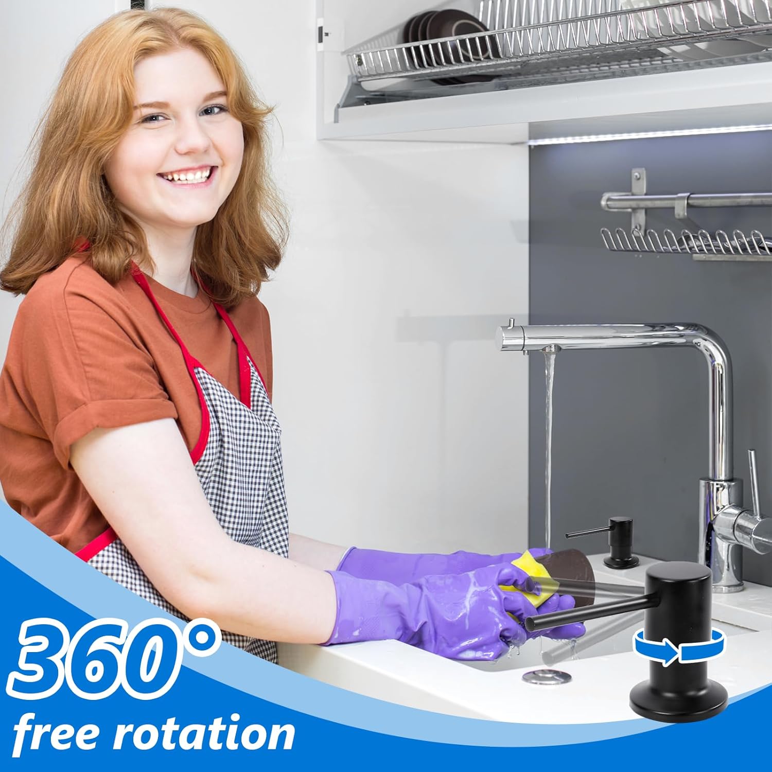 - NO MORE DIRTY: It effectively saves space under the sink and avoids crawling under the sink. The soap dispenser features a long tube kit that rotates 360 degrees freely, ready to meet the needs of different hand-washing positions.